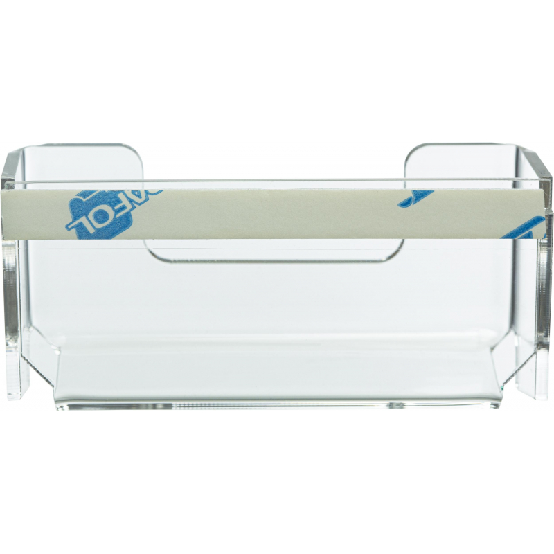 Горизонтальная односторонняя универсальная подставка на клейкой ленте. Размещается на любой поверхности. Предназначена для размещения бумажнопечатной продукции. Изделие изготовлено из гнутого акрилового стекла. Поставляется в защитной пленке. Размеры (ВхШхГ): 45x95x25 мм.