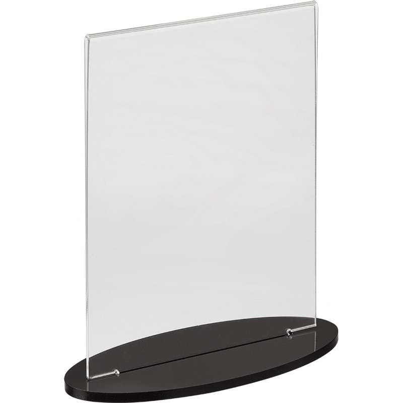Вертикальная двухсторонняя настольная подставка под информацию Attache. Формат А5. Имеет полукруглое основание из черного акрила. Поставляется в защитной пленке. Размер (ВхШхГ): 150x210x70 мм.
