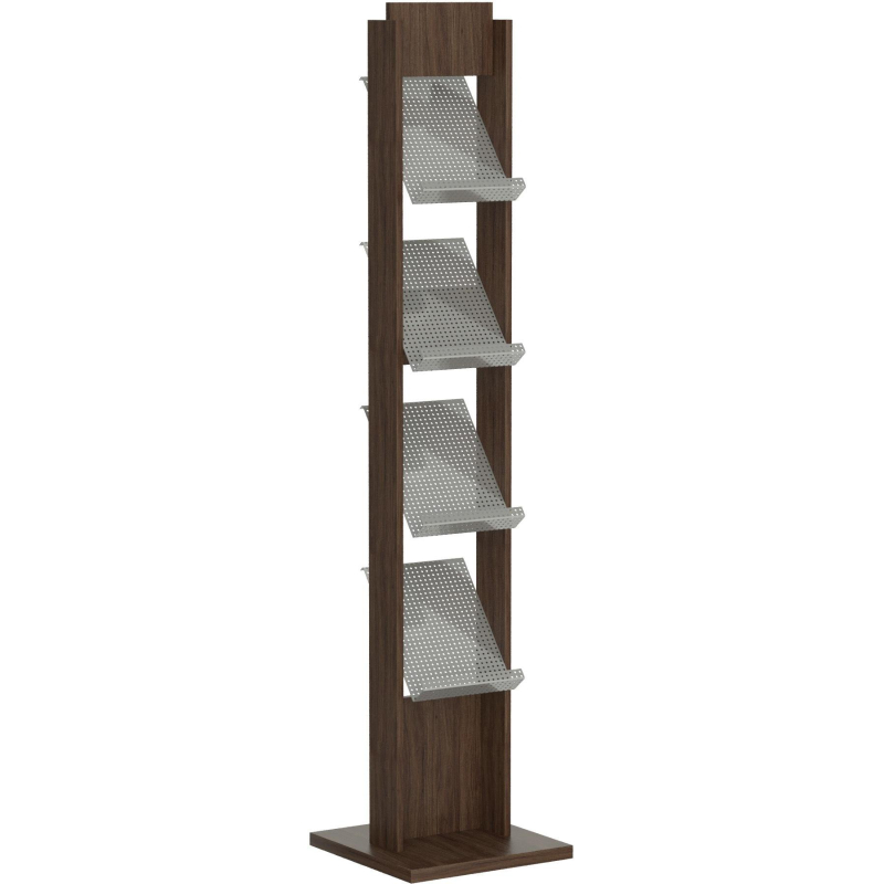 -Для каталогов, рекламных буклетов,прайс- листов и других печатных материалов формата А4. -Материал: ламинированный ДСП,металл. -Размер: высота 177см, ширина 29 см. -Размеры основания: 40x40 см. -В комплект входят :стойка, 4 кармана А4, фриз 25x15 см. -Цвет ДСП: венге. Цвет карманов: хром. -Вес 11,7 кг. -Стойка поставляется в разборном виде. Схема сборки и крепежи находятся в основании стойки.