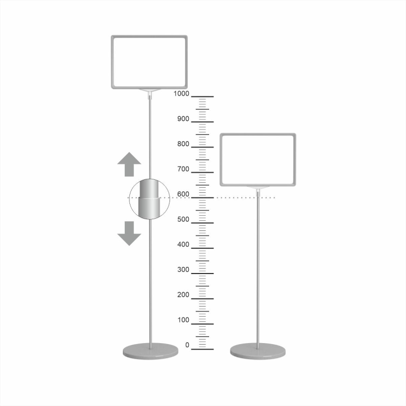 Двусторонняя раздвижная напольная стойка с рамкой формата А4 горизонтального или вертикального расположения. Раздвижная ножка с фиксацией от 60 до 100 см. Максимальная высота стойки с вертикальным расположением рамки А4-130 см. Минимальная высота стойки с горизонтальным расположением рамки А4-81 см. В информационной панели А4 возможно разместить 2 документа формата А4 (двусторонний доступ к информации). Металлическое основание. Информационная панель вынимается, можно расположить ее вертикально или горизонтально. Товар относится к ценовому сегменту 'суперэконом'. Имеет упрощенные характеристики и более простую упаковку. Отвечает основным требованиям потребления.