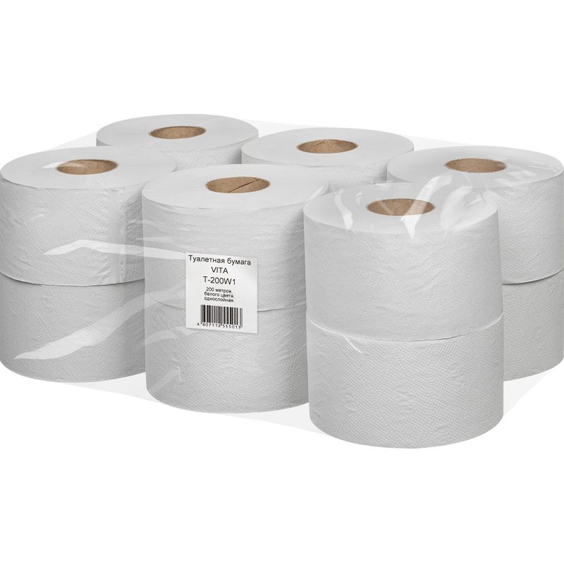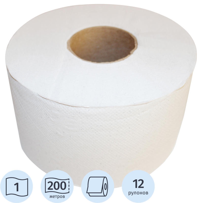 Бумага туалетная рулонная T2 1-слойная белая 12 рулонов по 200 метров (200W1). Предназначена для санитарно-гигиенического обеспечения мест общественного пользования с большой и средней проходимостью. Цвет натурального бумажного волокна. Благодаря тиснению бумага мягкая и приятная на ощупь. Белизна бумаги 65-75%. Время растворения бумаги в воде не более 7 секунд.Изготовлена из смешанного сырья. Поставляется упаковками по 12 рулонов.