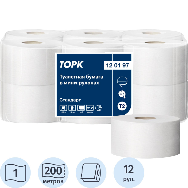 Бумага туалетная в рулонах Торк (Tork) 120197 Universal 1-слойная 12 рулонов по 200 метров. Торк (Tork) Universal (Торк Юниверсал) в мини-рулонах - туалетная бумага базового качества Universal. Экономичное решение Торк в сочетании с держателем для использования в местах со средней и высокой проходимостью. Бумага растворяется в воде. Повышенная емкость, гарантия минимального обслуживания. Изготовлена из вторичного сырья.Поставляется упаковками по 12 рулонов. Законодательные и технические документы