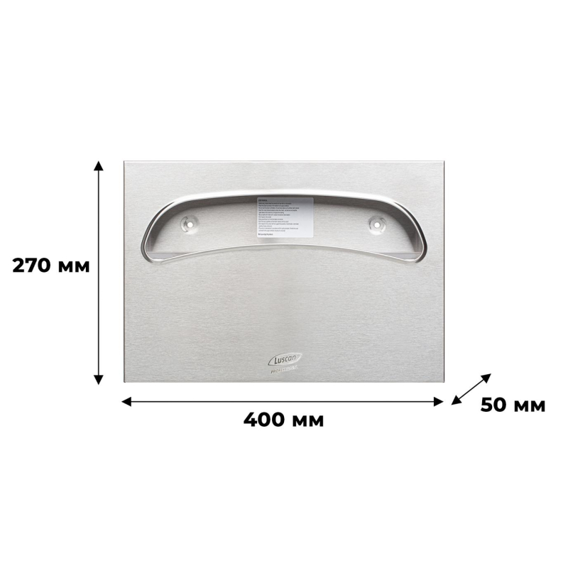 Диспенсер для покрытий на унитаз Luscan Professional нержавеющая сталь (код производителя 997973).Диспенсер для гигиенических покрытий подходит для использования в местах со средней и высокой проходимостью, а также в местах с повышенной влажностью, таких как туалетная комната в ресторане, офисе, торговом центре, аэропорту, вокзале и т.д. Держатель имеет эргономичную форму и компактные размеры. Размер диспенсера позволяет использовать гигиенические покрытия 1/2 сложения. Изготовлен из высококачественной нержавеющей стали. Размер вытяжного окна: 330x60 мм. Гигиенические покрытия до 250 листов, загрузка снизу.Вес: 0,824 кг.Размер диспенсера (ШxВxГ): 400x270x50 мм.Комплект поставки: в комплекте c диспенсером саморезы для крепежа.Гарантийный срок работы: 1 год.