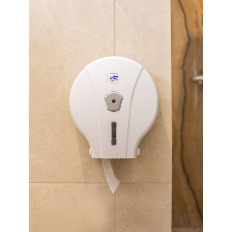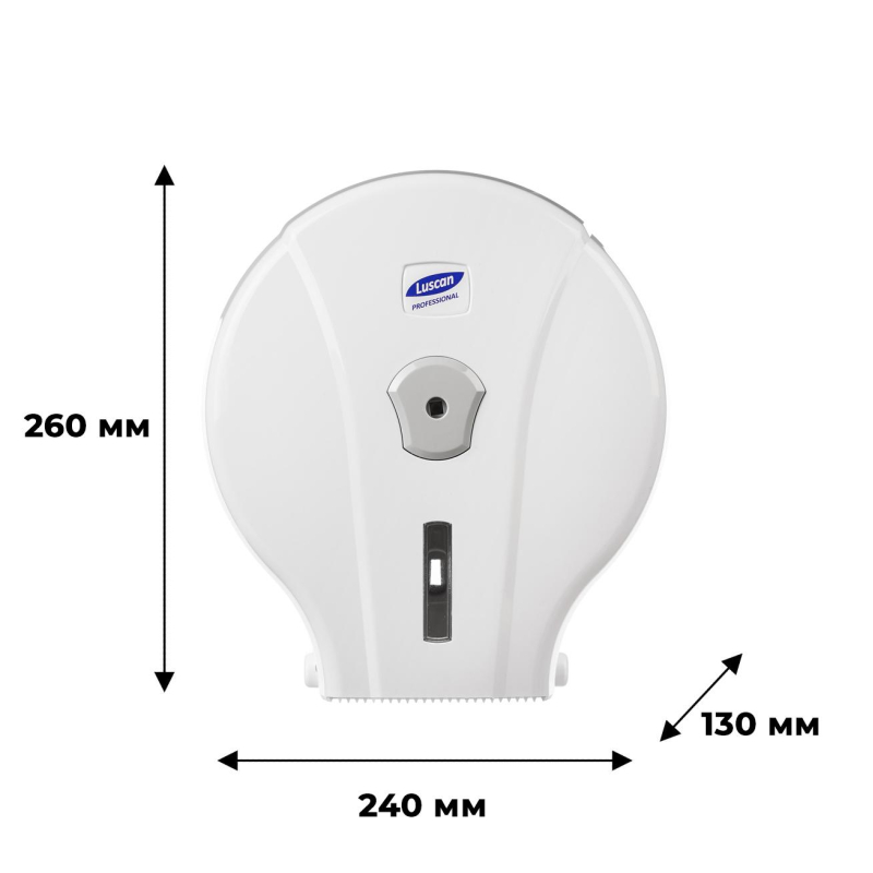 Диспенсер для туалетной бумаги в мини-рулонах Luscan Professional пластиковый белый. Универсальный эргономичный диспенсер компактных размеров для туалетной бумаги в мини-рулонах. Может использоваться в местах с высокой и умеренной проходимостью: кафе, ресторанах, ТЦ, ЖД вокзалах. Изготовлен из высокопрочногоABS-пластика. Контролировать наличие бумаги можно через небольшое смотровое окошко. Размер диспенсера (ВхШхГ): 260x240x130 мм. Материал: ABS-пластик Комплект поставки: диспенсер, ключ, саморезы для крепежа диспенсера. Гарантийный срок: 1 год.