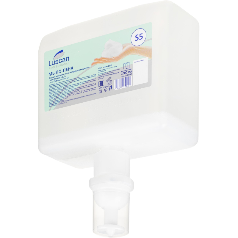 Картридж с жидким мылом-пеной Luscan Professional Optima S5 1000 мл Назначение: для гигиенического мытья рук и тела. В состав мыла входят только высококачественные ингредиенты, полностью соответствующие европейским стандартам безопасности, гипоалергенно, не имеет отдушки. Предназначен для применения в автоматических дозаторах: арт.1569598 и арт.1653724. Каждый картридж средства герметично запечатан и снабжён одноразовым дозирующим устройством, что предотвращает риск перекрёстного загрязнения и препятствует попаданию бактерий внутрь картриджа. Технология вспенивания средства позволяет значительно сократить расход средства, экономит Ваше время и деньги. Оптимальное решение для использования в отелях; санаторно-курортных, спортивных учреждениях. Широко применимо в местах общественного пользования, детских и медицинских учреждениях, на предприятиях общественного питания, на пищевых производствах. Способ применения: нанести мыло на увлажнённые поверхности кожи рук или тела, хорошо растереть, смыть проточной водой. Для мытья тела: нанести мыло на влажную губку, протереть тело, смыть проточной водой. Состав: вода очищенная, сульфоэтоксилат жирных спиртов, алкиламидопропилбетаин, диэтаноламид, ПЭГ-7 глицерилкокоат, тетранатрий ЭДТА, лимонная кислота, аллантоин, метилизотиазолинон, хлорметилизотиазолинон. Меры предосторожности: только для наружного применения! При попадании на слизистую оболочку глаз - обильно промыть водой. Хранить отдельно от пищевых продуктов и лекарственных средств, в местах недоступных для детей. Условия хранения: хранить при температуре от 5C до 25C в закрытой упаковке изготовителя, на расстоянии не менее 1 м от отопительных приборов, не допускать попадания прямых солнечных лучей. Страна-изготовитель: Россия. Срок годности: 24 месяца от даты производства.