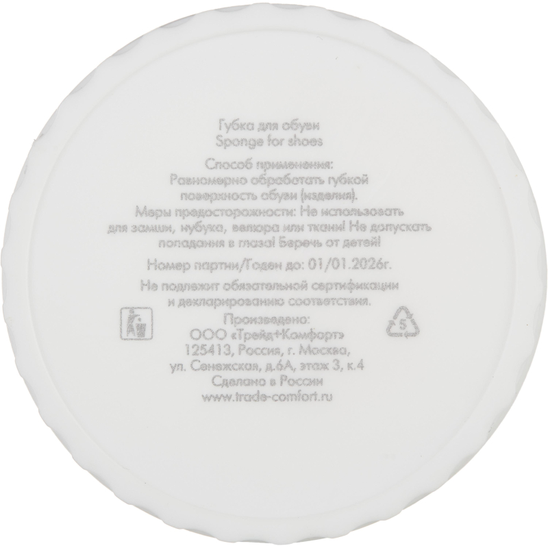 Губка придает безупречный блеск и восстанавливает первоначальный цвет обуви. Диаметр 6 см, высота 1.5 см. Количество в коробе - 400 штук. Срок годности - не ограничен.