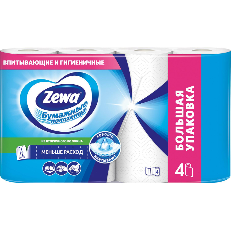 Полотенца бумажные Zewa 2-слойные белые 4 рулона по 14 метров Бумажные полотенца Zewa с дополнительной перфорацией 1/2 листа - это умный выбор для практичных хозяек! Теперь вы можете использовать ровно столько полотенец, сколько необходимо, экономя расход и заботясь о природе. Zewa - ваш незаменимый помощник в поддержании чистоты. Преимущества: дополнительная перфорация: разделите лист пополам и используйте рационально при небольших загрязнениях. Универсальность: идеально подходят для уборки на кухне, в ванной комнате, детской и любых других помещений. Прочность и впитываемость: двухслойная структура из вторичной целлюлозы обеспечивает эффективное удаление загрязнений и впитывание жидкостей. Безопасность: белые полотенца без рисунка изготовлены из вторичного волокна и не содержат лишних добавок. В упаковке 4 рулона- хватит надолго! Zewa - выбирайте разумную экономию и чистоту без компромиссов!