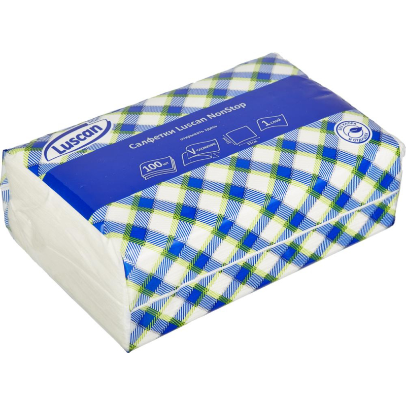 Салфетки бумажные Luscan NonStop белые 1-слойные 100 штук в пачке. Назначение: Однослойные салфетки Luscan NonStop белого цвета с тиснением обладают хорошими впитывающими свойствами и мягкой текстурой. Полистовая подача обеспечивает высокий уровень гигиены - посетитель дотрагивается только до той салфетки, которой будет пользоваться. Могут использоваться в ресторанах самообслуживания, отелях и кейтеринговых компаниях. Изготовлены из 100% целлюлозы. Салфетки поставляются сложенными вчетверо. Размер листа в разложенном виде - 21x33 см (плюс-минус 5%). В сложенном виде размер - 10.5x16.5 см. Диспенсерная система: N4. В упаковке 100 штук (плюс-минус 4 штуки).