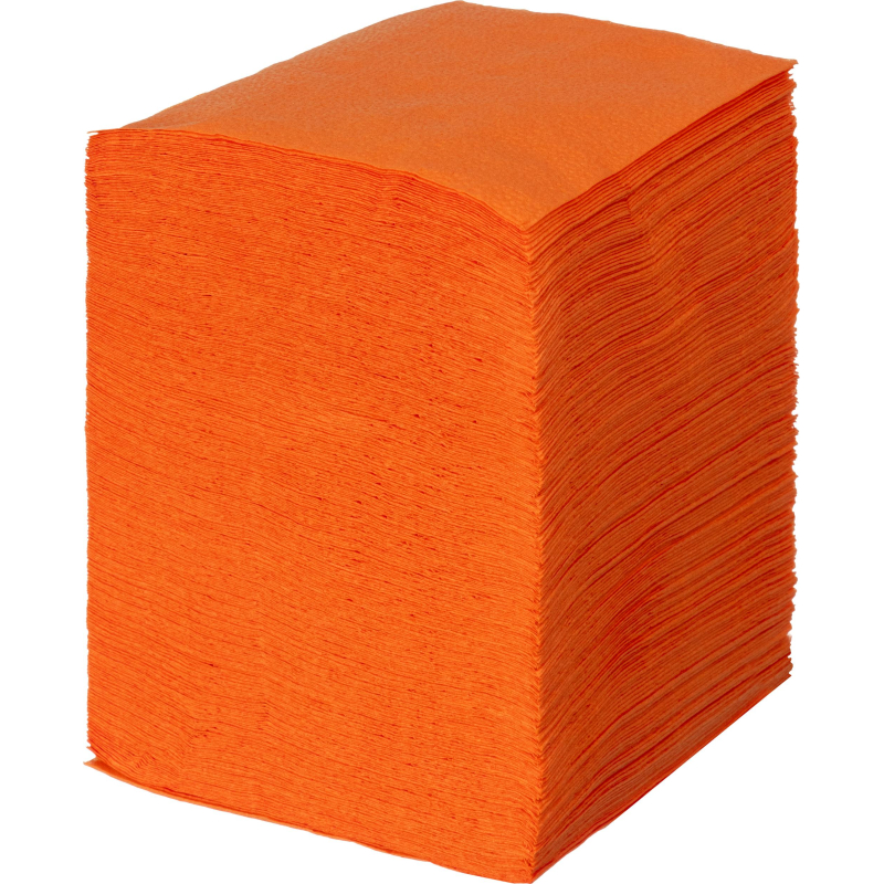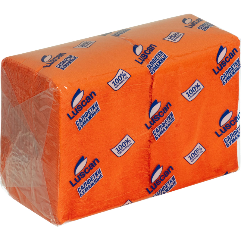 Однослойные салфетки Luscan оранжевого цвета с тиснением Сложены вчетверо, могут использоваться в повседневном быту, на офисной кухне, и различных увеселительных мероприятиях, в столовых, в кафе, в ресторанах. Изготовлены из 100% целлюлозы. Поставляются в полиэтиленовой упаковке по 400 шт. Размеры развернутой салфетки: 24x24 см.
