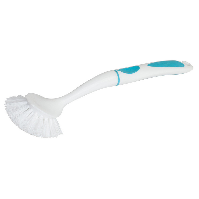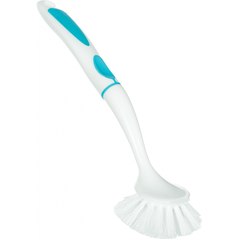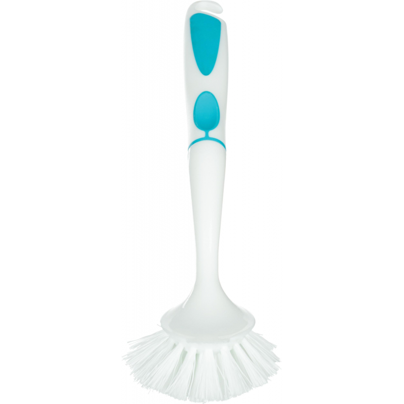 Щетка для мытья посуды Spin&clean Софтэль средней жесткости 260x70 мм белая/бирюзовая. Имеет удобную ручку с резиновой вставкой, что препятствует скольжению даже мокрой руки. Ворс прочный и не деформируется при высоких температурах воды. Температурная стойкость: от -5 до 70 °С. На рукоятке щетки расположено отверстие для размещения на крючке. Соответствует ХАССП. Материал: полипропилен. Размеры: рабочей части - 70x70 мм, длина рукоятки - 200 мм, общая длина - 260 мм. Цвет: белый/бирюзовый.