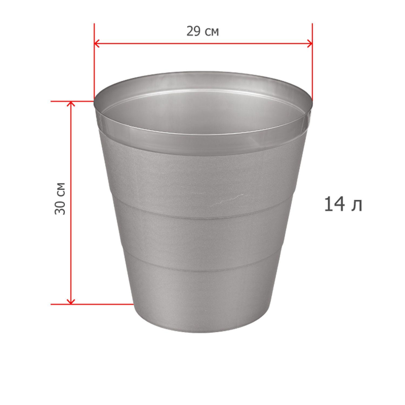 Корзина для мусора объемом 14 л изготовлена из полипропилена. Легкая, прочная, экономичный вариант для офиса и дома. Корпус расширяется к верху, без перфорации. Размер: диаметр по верхнему краю - 29 см, диаметр дна - 19 см, высота - 30 см. Цвет: серый. Вес: 0.3 кг.Внимание: в характеристике "Объем рекомендуемого мешка" указан минимальный объем мешка, который подойдет для изделия. Рекомендуется приобретать мешки указанного, либо большего объема.