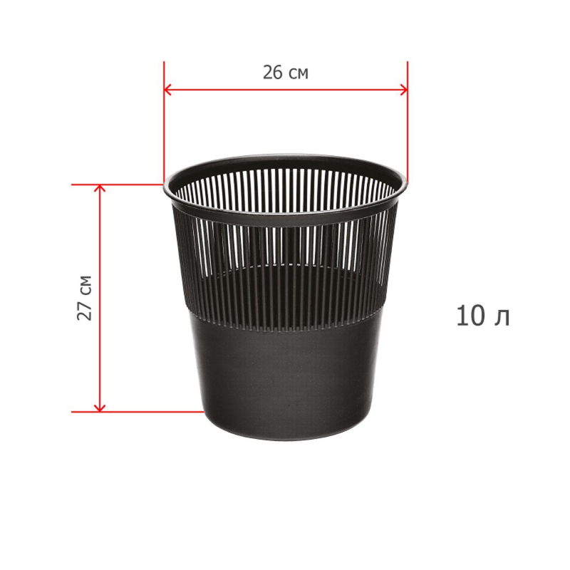 Корзина для мусора Luscan 10 л пластик черная (25x27 см). Корзина для мусора 10 л предназначена для сбора мелкого мусора и бумаг дома или в офисе. Пластик довольно прочный, но в то же время обладает достаточной гибкостью. Корпус расширяется кверху, корзина для мусора имеет перфорацию. Компактные размеры позволяют использовать ведро без ущерба к полезному объему помещения. Цвет: черный. Объем: 10 л. Диаметр: 25 см. Высота: 27 см. Вес: 0.3 кг.Внимание: в характеристике "Объем рекомендуемого мешка" указан минимальный объем мешка, который подойдет для изделия. Рекомендуется приобретать мешки указанного, либо большего объема.