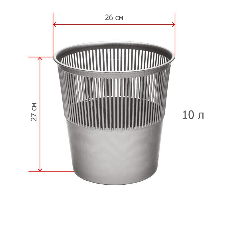 Корзина для мусора Luscan 10 л пластик серая (26х27 см). Корзина для мусора 10 л предназначена для сбора мелкого мусора и бумаг дома или в офисе. Пластик довольно прочный, но в то же время обладает достаточной гибкостью. Корпус расширяется кверху, корзина для мусора имеет перфорацию. Компактные размеры позволяют использовать ведро без ущерба к полезному объему помещения. Цвет: серая. Объем: 10 л. Диаметр: 26 см. Высота: 27 см. Вес: 0.3 кг.Внимание: в характеристике "Объем рекомендуемого мешка" указан минимальный объем мешка, который подойдет для изделия. Рекомендуется приобретать мешки указанного, либо большего объема.
