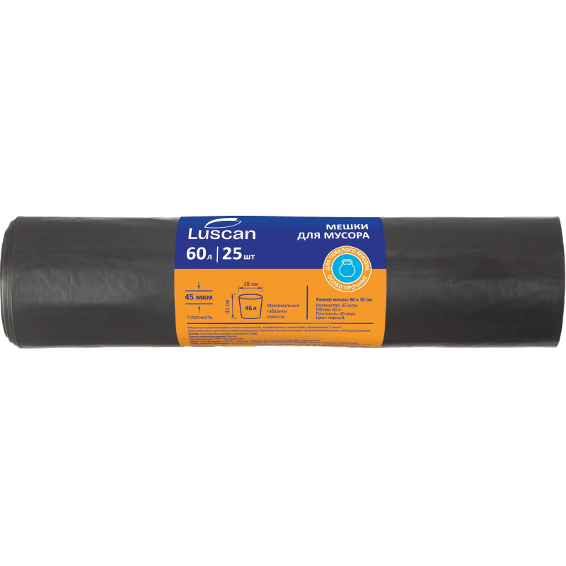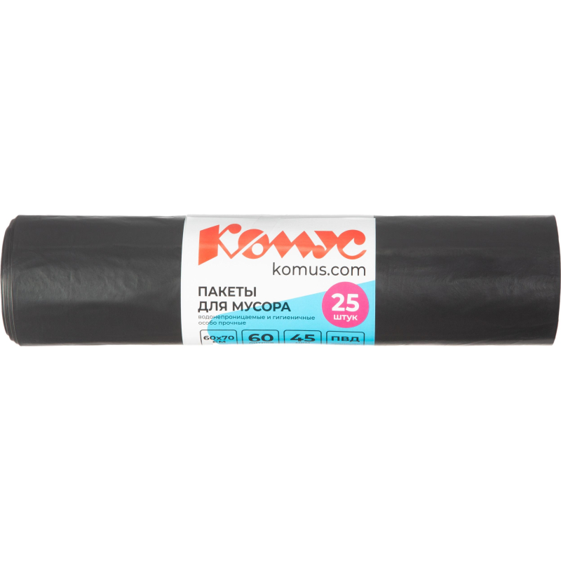 Мешки для мусора Комус 60 л черные (ПВД, 45 мкм). Применяются для хранения и транспортировки строительного и производственного мусора, бытовых и продуктовых отходов. Данные пакеты подходят для уборки придомовой территории ЖКХ, сбора листьев и растительного мусора при сезонной уборке улиц, бульваров, скверов, парков. Объем 60 литров, плотность 45 микрометров. Упакованы по 25 штук. Цвет черный. Ширина 60 сантиметров. Длина 70 сантиметров.
