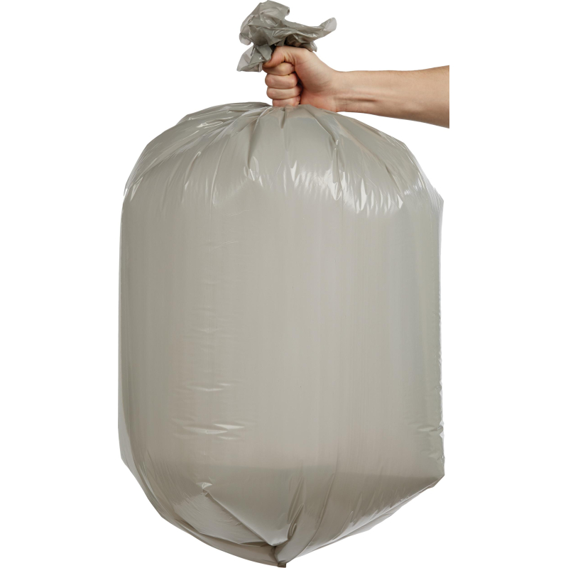 Мешки для мусора 120 л серые особо прочные (ПВД, 35 мкм). Мешки для мусора изготовлены из полиэтилена высокого давления с добавлением компонента PRD, специально разработанного для улучшения физико-химических свойств материала. Это обеспечивает повышенную прочность мешков, устойчивость к поперечным и продольным разрывам, сжатию и растяжению, увеличивает их стойкость к воздействию колющих предметов. При больших нагрузках изделие может растягиваться или трескаться, но не рваться. Мешки водо- и паронепроницаемы. Уязвимы для воздействия газов, легко окисляются. Оптимальны для бытовых и пищевых отходов, текстиля. Применение PRD позволяет использовать мешки для мусора более разнообразно - например, для хранения воды в еврокубах, для тяжелых предметов с неровной поверхностью. Объем 120 литров, плотность 35 микрометров. Упакованы по 10 штук. Цвет серый. Ширина 70 сантиметров. Длина 110 сантиметров.