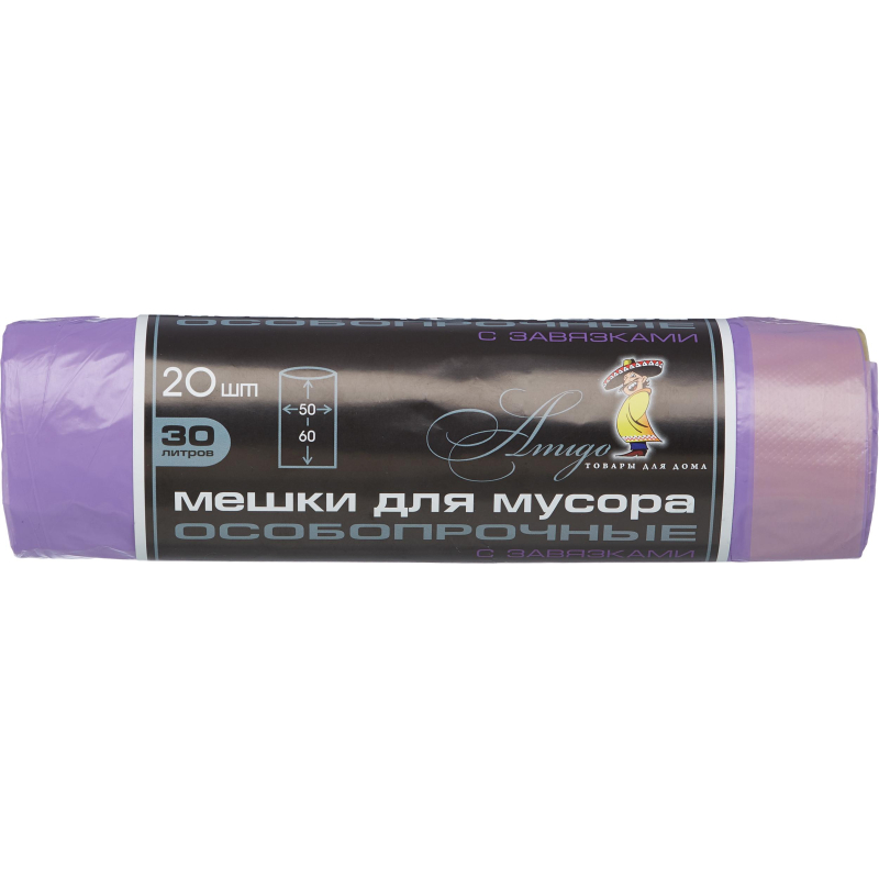 Мешки для мусора 30 л с завязками фиолетовые (ПНД 25 мкм, 20 штук в рулоне). Подходят для легкого пластика и упаковки. Данные пакеты находят широкое применение в домашнем использовании, в офисе, в производственных помещениях и государственных учреждениях (поликлиниках, школах, детских садах), в гостиницах, салонах красоты, фитнес-центрах. С завязками. Объем 30 литров, плотность 25 мкм. Упакованы по 20 штук. Цвет фиолетовый. Ширина 50 см. Длина 60 см.