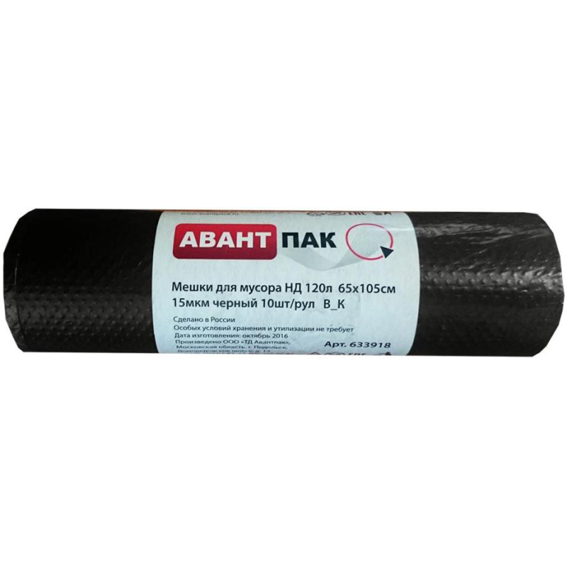 Мешки для мусора 120 л черные (ПНД, 15 мкм). Подходят для бытовых и пищевых отходов, текстиля. Данные пакеты находят широкое применение в домашнем использовании, в санаториях, гостиницах, барах, ресторанах, кафе. Не являются ароматизированными и биоразлагаемыми. Упакованы по 10 штук.