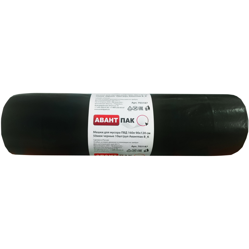Мешки для мусора Авантпак 160 л черные (ПВД, 50 мкм). Применяются для хранения и транспортировки строительного и производственного мусора, бытовых и продуктовых отходов. Данные пакеты подходят для уборки придомовой территории ЖКХ, сбора листьев и растительного мусора при сезонной уборке улиц, бульваров, скверов, парков. Не являются ароматизированными и биоразлагаемыми. Упакованы по 10 штук.