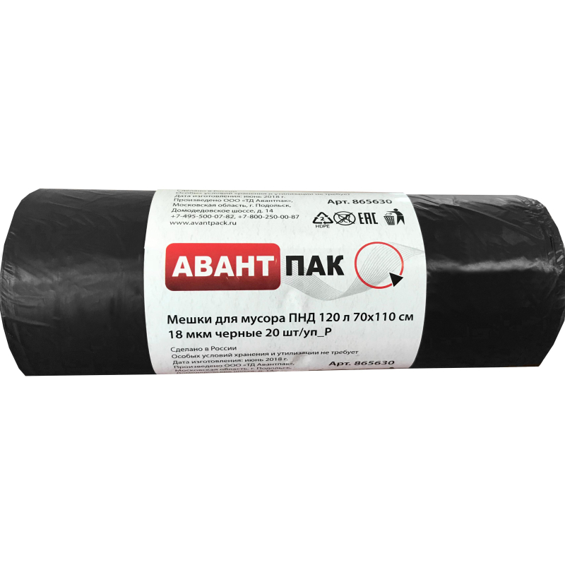 Мешки для мусора 120 л черные (ПНД, 18 мкм). Подходят для легкого пластика и упаковки. Данные пакеты находят широкое применение в домашнем использовании, в офисе, в производственных помещениях и государственных учреждениях (поликлиниках, школах, детских садах), в гостиницах, салонах красоты, фитнес-центрах. Изготовлены из полиэтилена низкого давления (ПНД). Не являются ароматизированными и биоразлагаемыми. Упакованы по 20 пакетов в рулоне.
