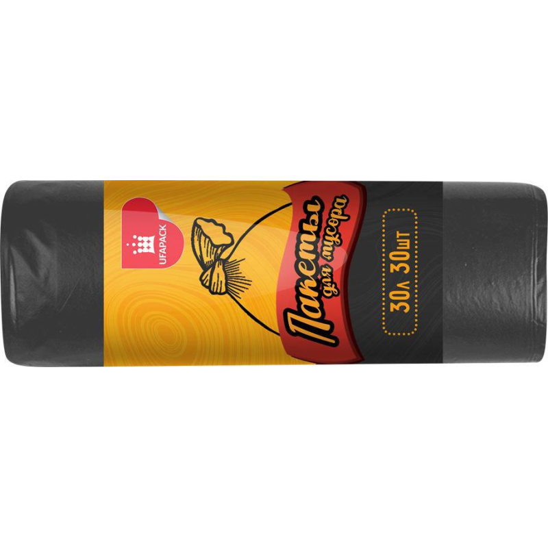 Мешки для мусора Уфа Пак 30 л черные (ПНД, 10 мкм). Подходят для легкого мусора. Данные пакеты нашли широкое применение в домашнем использовании, в офисе, в производственных помещениях и государственных учреждениях (поликлиниках, школах, детских садах и пр.). Изготовлены из полиэтилена низкого давления (ПНД). Не являются ароматизированными и биоразлагаемыми. Упакованы по 30 пакетов в рулоне.