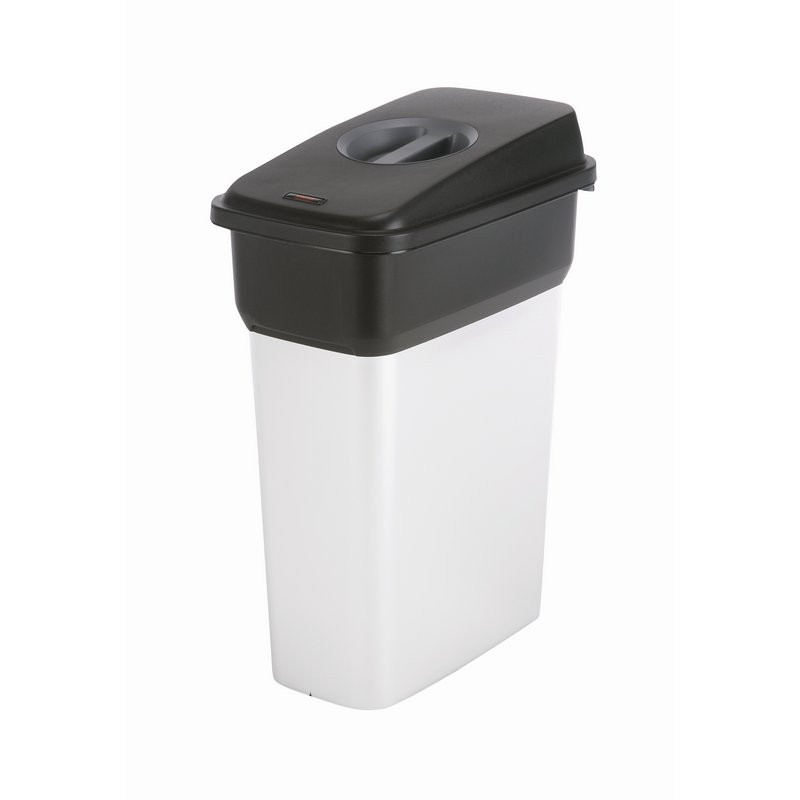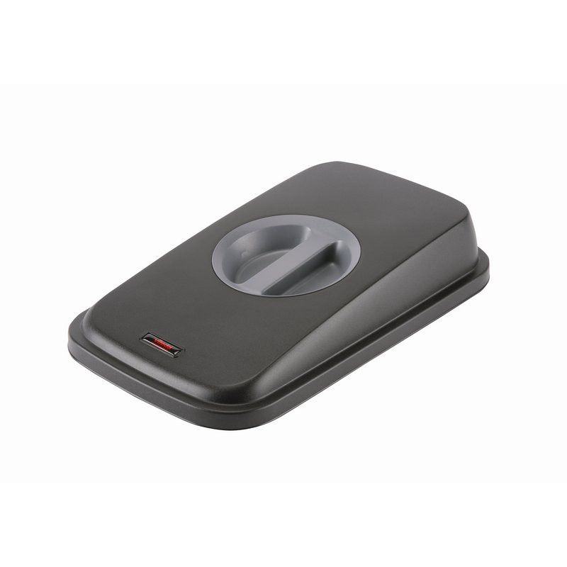 Крышка для урны Vileda Professional Гео с ручкой пластик чёрный/серый (арт. производителя 137730)Для производства контейнеров ГЕО используется инновационная технология комбинированных материалов, которая позволяет сочетать износостойкость и гибкость пластика с эстетическими свойствами нержавеющей стали. В результате контейнеры не подвергаются коррозии, на их поверхности не остаются отпечатки пальцев и вмятины, а благодаря инновационному дизайну они вписываются в самые современные интерьеры. Большой выбор крышек с цветовой кодировкой отвечает актуальным требованиям по раздельному сбору отходов.Особенности и преимущества:- подходит для контейнеров ГЕО 55 и 70 л;- гладкая поверхность для лёгкой очистки;- встроенная ручка;- скрывает пакет для мусора;- также доступны крышки с узким отверстием для бумаги и с круглым отверстием для бутылок.Материал крышки - полипропилен, вставка - ударопрочный технический термопласт (АБС).Допустимый температурный диапазон эксплуатации: от -15 до 130 C.Высота: 9 см.Размер: 49x29 см.Цвет: чёрный/серый.Вес: 570 г.