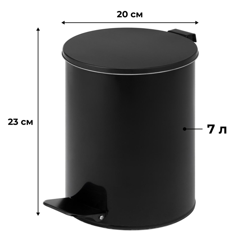 Круглая урна для мусора 7 л с педалью выполнена из оцинкованной стали толщиной 0.4-0.5 мм с полимерным покрытием. Толщина металла и наличие дополнительных ребер жесткости снизу и сверху металлического бака делают его гораздо более стойким к деформационным воздействиям на корпус. Снабжена внутренним кольцом-держателем для мусорных пакетов. Мусорная урна поставляется в картонной упаковке и защитной полиэтиленовой пленке во избежание повреждений покрытия урны. Использование оцинкованной стали с полимерным покрытием обуславливает возможность использования урны как в сухих, так и во влажных и холодных помещениях, а также под открытым небом. Размер контейнера: диаметр 20 см, высота 23 см. Цвет: черный. Вес: 1.15 кг.Внимание: в характеристике "Объем рекомендуемого мешка" указан минимальный объем мешка, который подойдет для изделия. Рекомендуется приобретать мешки указанного, либо большего объема.