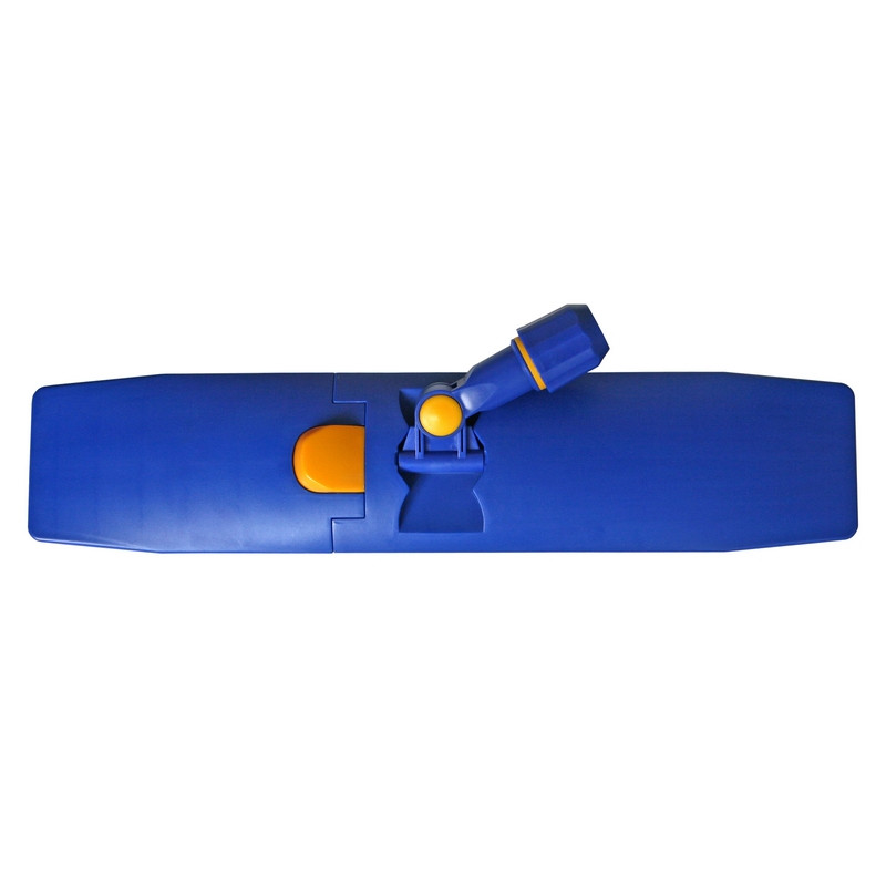 Держатель МОПа 50х10см пластик синий/оранжевый Держатель МОПов изготовлен из пластика и предназначен для уборки полов. Механизм снабжен удобной защелкой-фиксатором, которая легко отжимается ногой при необходимости сложить флаундер для отжима или смены МОПа. По окончании отжима или замены МОПа держатель фиксируется в рабочем положении после опускания на пол нажатием на ручку (срабатывает защелка-фиксатор). Используется с МОП-насадками с карманами. Крепление: отверстие для фиксатора. Размер: 50x10 см