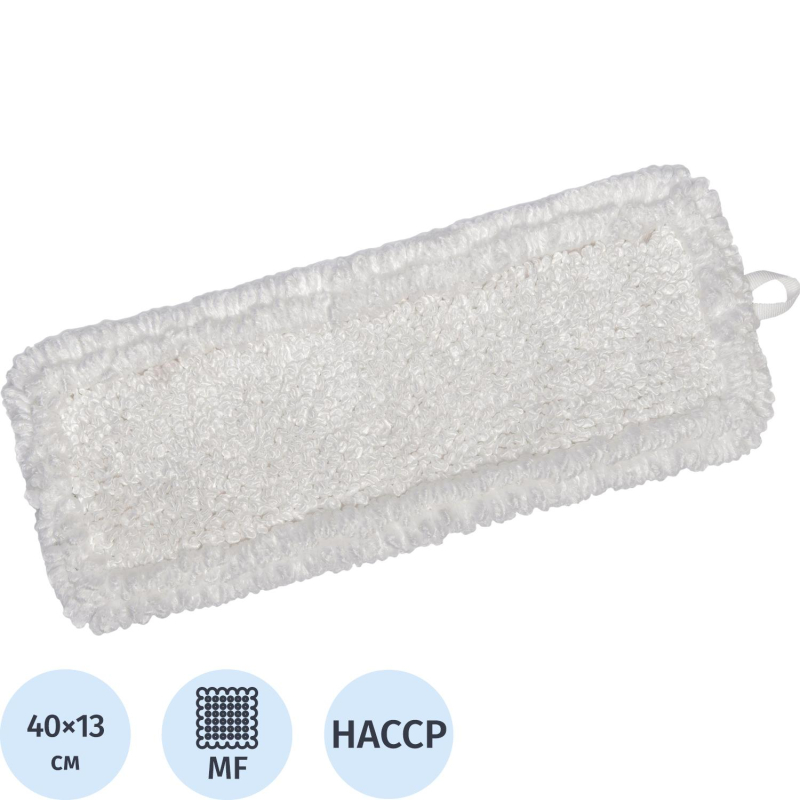 Насадка МОП микрофибра плоская. Очень плотный моп. Микрофибровые петли внутри и по периметру мопа хорошо справляются с любым загрязнением. Имеет значительный вес, благодаря чему можно вести моп по полу без применения значительного давления к держателю. Петельный моп изготовлен по технологии Lock Tufting. Ряды петель плотно прилегают друг другу и не образовывают залысин. Высокая впитываемость мопа, хорошо моет и удерживает грязь, длительный срок службы и стойкость к кислотным или щелочным средствам. При смачивании мопа, его петли не теряют форму и упрогость от воды. Основание и микрофибровые петли не подвержены прению и гниению. Предназначается для гладких и полированных полов. Рекомендуется применять на поверхностях с загрязнением не выше среднего. Может работать как с большим, так и небольшим количеством воды, имеет максимальное водопоглощение. В отжатом состоянии не оставляет разводов Сфера применения мопа: рестораны, кафе, столовые, здравоохранение, гостиницы, промышленная индустрия и т.д. Уход за мопом: стирка при температуре до 60°С допускается сушка в барабане стиральной машины не отбеливать имеется цветовая кодировка. Размер: 40x13 сантиметров. Цвет: белый. Состав 100% микрофибра Крепление универсальное (любые аналоги мопов).