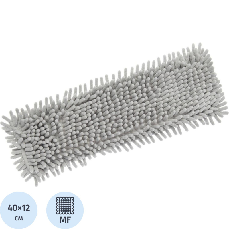 Насадка МОП микрофибра плоская Home Queen. Насадка для швабры из микрофибры (ткань шенилл) походит для всех видов напольных покрытий. Отличается высокой износостойкостью. Не царапает поверхность, отлично впитывает влагу, притягивает жирные и маслянистые загрязнения. Насадка крепится к швабре посредством двух боковых карманов (один на липучке). Размер держателя: 39х10 сантиметров. Размер: 40x12 сантиметров. Вес: нетто - 80 грамм, брутто - 85 грамм. Материал насадки: микрофибра.<!--noindex-->Товар относится к ценовому сегменту "бюджет". Имеет базовые характеристики и более простую упаковку. Отвечает основным требованиям потребления<!--/noindex-->
