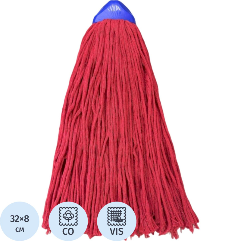 Насадка МОП хлопок/вискоза веревочная Премиум BIG. Рассчитан для больших объемов уборки, долговечен на гладких и шероховатых полах. Веревочный МОП из вискозы и хлопка используется вместо традиционных тряпок для влажной уборки полов. Отлично собирает грязь, впитывает влагу, не оставляет ниток и разводов. Рекомендуется для использования в бассейнах, на кухнях, в проходных помещениях в осенне-зимний период. Сфера применения: гостиницы, рестораны, кафе, бары, повседневная уборка; промышленность. Уход за изделием: стирать при температуре до 60°C, не сушить в сушильной машине, не отбеливать. Крепление: резьбовое. Материал: хлопок, вискоза. Размер МОПа: 32 сантиметра. Вес: 303 грамма.<!--noindex-->Товар относится к ценовому сегменту "бюджет". Имеет базовые характеристики и более простую упаковку. Отвечает основным требованиям потребления<!--/noindex-->