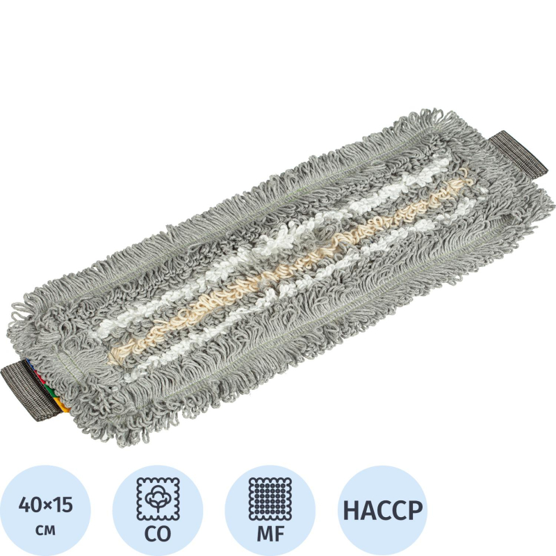 Универсальный, стойкий к износу и надежный МОП для уборки любых твердых напольных покрытий. Подметает, моет и впитывает. Хит продаж Vileda Professional.Данный МОП является частью системы УльтраСпид Про. Это уникальная профессиональная система для уборки средних площадей методом ?ведро-вода? с запатентованным высокоэффективным отжимом насадок. Особенности и преимущества: высокоэффективная структура МОПа: белые микроволоконные нити отлично отмывают, серые комбинированные нити - оттирают и удерживают грязь, бежевые нити из хлопка - впитывают много грязи и влаги, благодаря петельчатой конструкции МОП хорошо скользит по полу и собирает в петли загрязнения, удерживая их. Петли также облегчают разрыхление загрязнений, плотная основа и окантовка, двойная прошивка увеличивают срок службы МОПа, надежный тафтинг: петли МОПа держат форму, не скатываются и не распускаются в процессе уборки, ремни МОПа имеют высокую устойчивость к усадке и деформации при соблюдении рекомендаций по использованию, стирке, сушке и хранению, отлично отжимается, подходит для держателя и высокоэффективного туннельного отжима системы УльтраСпид Про, крепление на ремнях, четырехцветная кодировка для исключения перекрестных загрязнений. Вес нетто: 130 грамм. Размер: 14.5 сантиметров по ширине и 40 сантиметров по длине основы. Состав: рабочая поверхность МОПа: белые нити - 100% полиэфирное микроволокно, серые нити - 70% полиэфиры, 25% хлопок, 5% прочие, бежевые нити - 95% хлопок, 5% прочие. Основа, ремни, окантовка, хлястики - 100% полиэфиры.