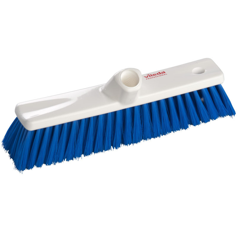 Щетка Vileda супер жесткая.<br>Особенности и использование:<br>- Щетка разработана для эффективной очистки пола<br>- Долговечный полипропиленовый материал с легко очищаемой поверхностью и отверстием для подвешивания и крепления<br>- Щетина из PBT-материала: превосходное восстановление после сгибания и высокая сопротивляемость широкому ряду химических средств<br>- Универсальная резьба: рекомендована к использованию Усиленная алюминиевая ручка (арт. 546542)<br>- Скобки из прочного материала - нейзильбера - для обеспечения долговечности, гигиены, не подвержены ржавчине<br>- Возможное автоклавирование при температуре до +134 °С.