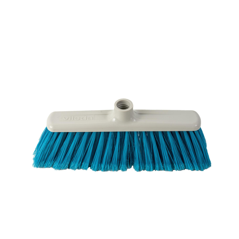 Экономичная щетка для ежедневного подметания напольных покрытий. Особенности и преимущества: - густая щетина легко собирает мусор с любых напольных покрытий, равномерно подметая пол, - щетина имеет расщепление на концах для эффективного подметания мелкого сора, например микрочастиц пыли, ворса и волос, - щетина легко восстанавливается, принимая первоначальную форму, - ворс щетки имеет хорошее сцепление с поверхностями, при этом не повреждает их, - надежное крепление щетины к корпусу щетки, - гигиеничные моющиеся материалы, - высококачественный пластик для максимально долгого срока службы, - резьбовое крепление к ручке. Вес: 260 г. Размер: длина 30 cм, диаметр щетины 0,3 мм, длина щетины 8,5 cм. Цвет щетины: синий. Жесткость щетины: средняя Состав: каркас щетки - полипропилен, щетина - полиэтилентерефталат.