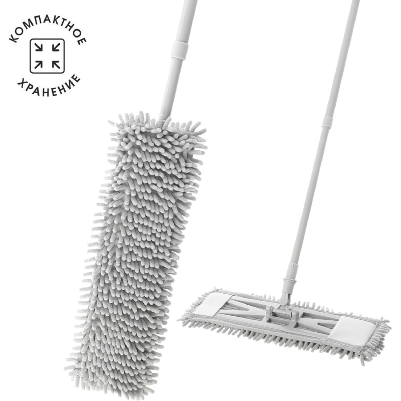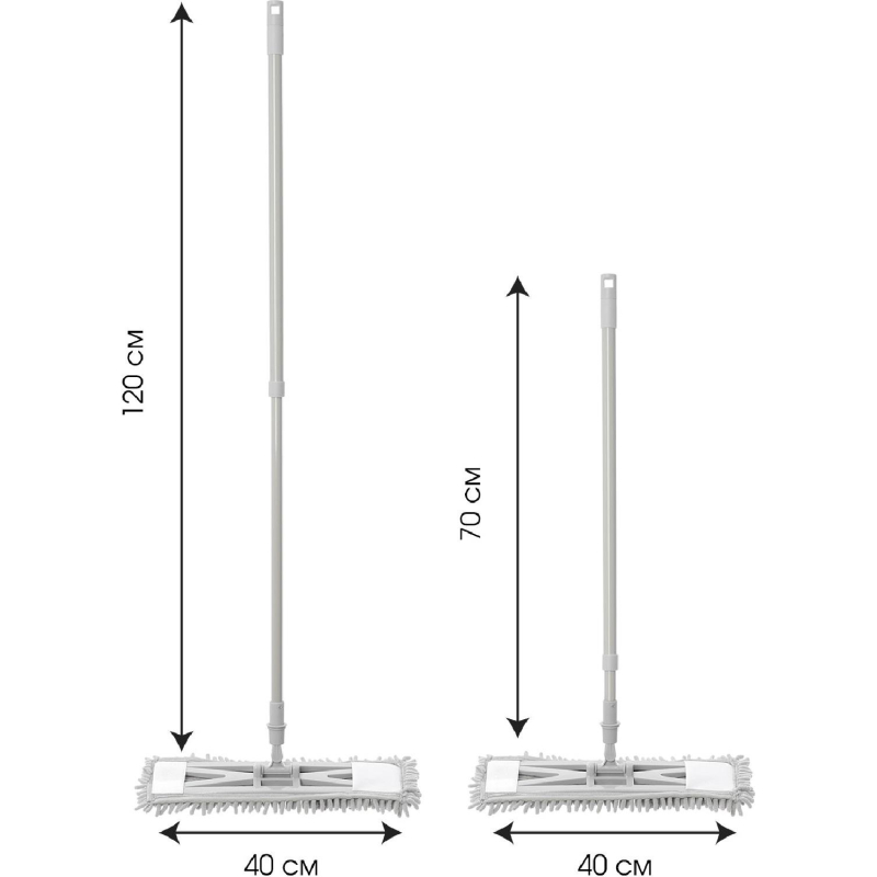 Швабра флаундер Home Queen 40x12 см телескопическая ручка с МОПом серая. Швабра для пола с насадкой из микрофибры (шенилл) подходит для всех видов напольных поверхностей. Высокая износостойкость. Не царапает, отлично впитывает влагу, притягивает жирные и маслянистые загрязнения. Экономия моющих средств благодаря составу насадки. Без разводов. Насадка крепится к швабре посредством двух боковых карманов (один на липучке). Размер: ручка 120 см, внутренний диаметр 19 мм, наружный диаметр 22 мм. Материал насадки: микрофибра, состав ручки: пластик, состав штанги: металл. Комплект поставки: - пластиковая рукоятка 120 см. - насадка из микрофибры 40x12 см.