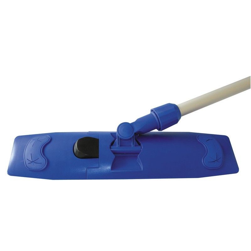 Швабра флаундер 40х10 см синяя Швабра-флаундер используется для профессиональной влажной, а также сухой уборки в помещениях с гладким напольным покрытием. Рукоятка швабры выполнена из легкого алюминия и имеет пластиковый наконечник, который предупреждает выскальзывание швабры даже из влажных рук. Насадка для швабры в комплект не входит. Вес: 1,11 кг. Состав: пластик, металл. Материал рукоятки: алюминий. Материал инвентаря: пластик. Тип крепления МОПа: рамочный карман. Комплект поставки: рукоятка 140 см держатель 40x10 см