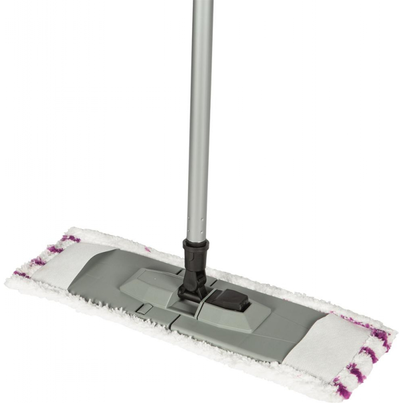 Швабра флаундер Spin&clean Soft SV5101 40x10.5 см серая. Предназначена для сухой и влажной уборки без использования химических средств. Защелка-фиксатор позволяет быстро сложить рабочую поверхность держателя для смены или отжима МОПа. Благодаря поворотному механизму может использоваться и на горизонтальных, и на вертикальных поверхностях. Комплект поставки: - рукоятка длиной 110 см из металла с защитным пластиковым покрытием (нетелескопическая, сменная); - держатель 2.5 см с плоской полипропиленовой платформой размером 40x10.5 см (допускается отклонение в пределах 5 мм), хорошо прилегающей к поверхности и обеспечивающей легкий доступ в углы и под мебель; - насадка МОП из полиэстера размером 42x13 см, бархатистая поверхность которой легко собирает пыль, волосы и шерсть домашних животных, не распространяя микрочастички в воздухе. Подлежит ручной или автоматической стирке при температуре не выше 40 °С.
