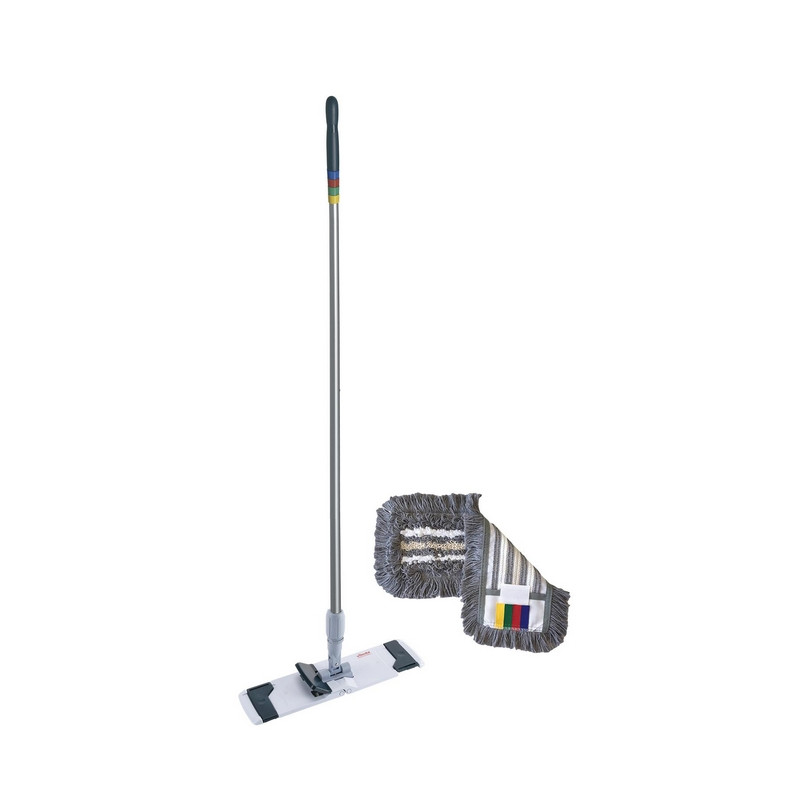 Швабра флаундер Vileda Professional "КомбиСпид Про" 40x10 см с МОПом (арт. производителя 540413).Особенности и преимущества:- готовая к использованию комплектация для уборки типовых загрязнений и покрытий;- высококачественный, износостойкий и прочный инвентарь с максимально долгим сроком службы;- эффективная очистка поверхностей с помощью микроволокна;- цветовая кодировка МОПов предотвращает перекрестное загрязнение;- гарантия качества от европейского производителя;- подходит для уборки помещений площадью до 300 м.кв.Комплектация:1. Держатель МОПов "КомбиСпид Про" 40 см - 1 штука.2. Ручка алюминиевая с цветовой кодировкой 150 см - 1 штука.3. МОП "ТриоПлюс КомбиСпид" 40 см - 1 штука.