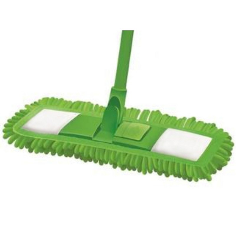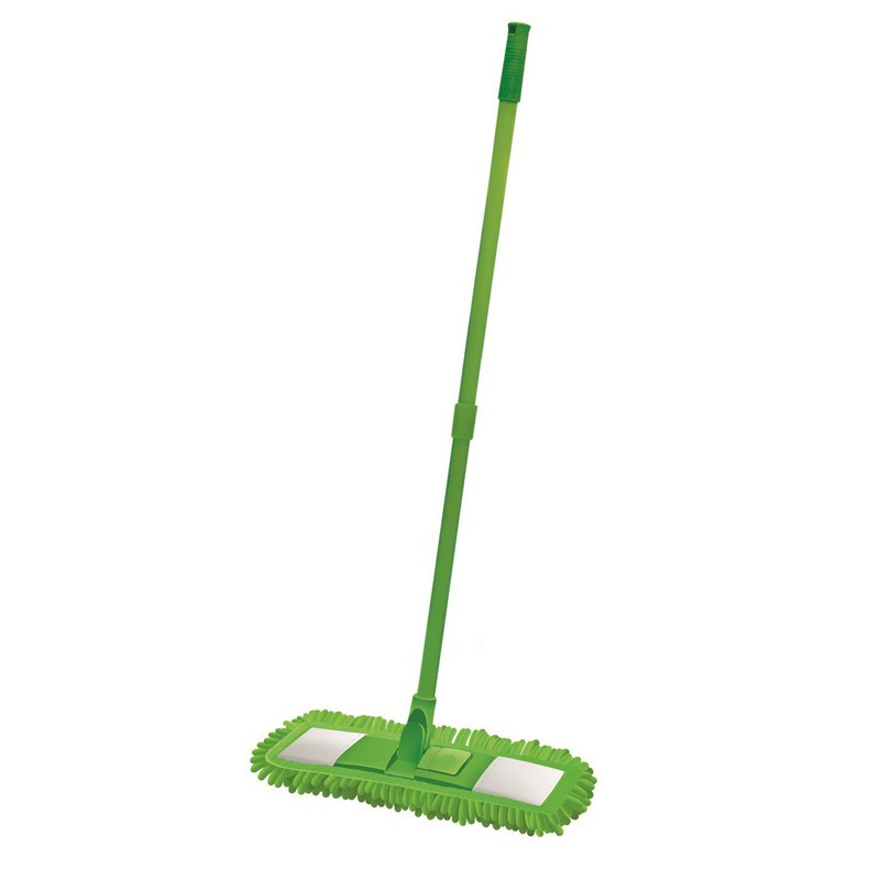 Швабра-флеттер Хозяюшка Мила 45x14,5 см с МОПом Швабра с оригинальной насадкой из микрофибры в виде ворса отлично удаляет загрязнения с любых напольных покрытий. Прекрасно подходит для натуральных и деликатных напольных покрытий: ламинат, пробка, паркетная доска. Не оставляет разводов и ворсинок. Конструкция швабры предусматривает наличие телескопического черенка, который увеличивает длину швабры с 82 до 134 см Швабры-флеттер, произведённые в России на собственном производстве, отличаются превосходным качеством и сборкой и радуют оптимальной ценой. Размер МОПа: 45x14,5x2 см Материал МОПа: микрофибра. Длина рукоятки: 130 см Материал рукоятки: металл. Цвет: зелёный. Комплект поставки: - телескопическая ручка 130 см -держатель - насадка из микрофибры 45x14,5x2 см