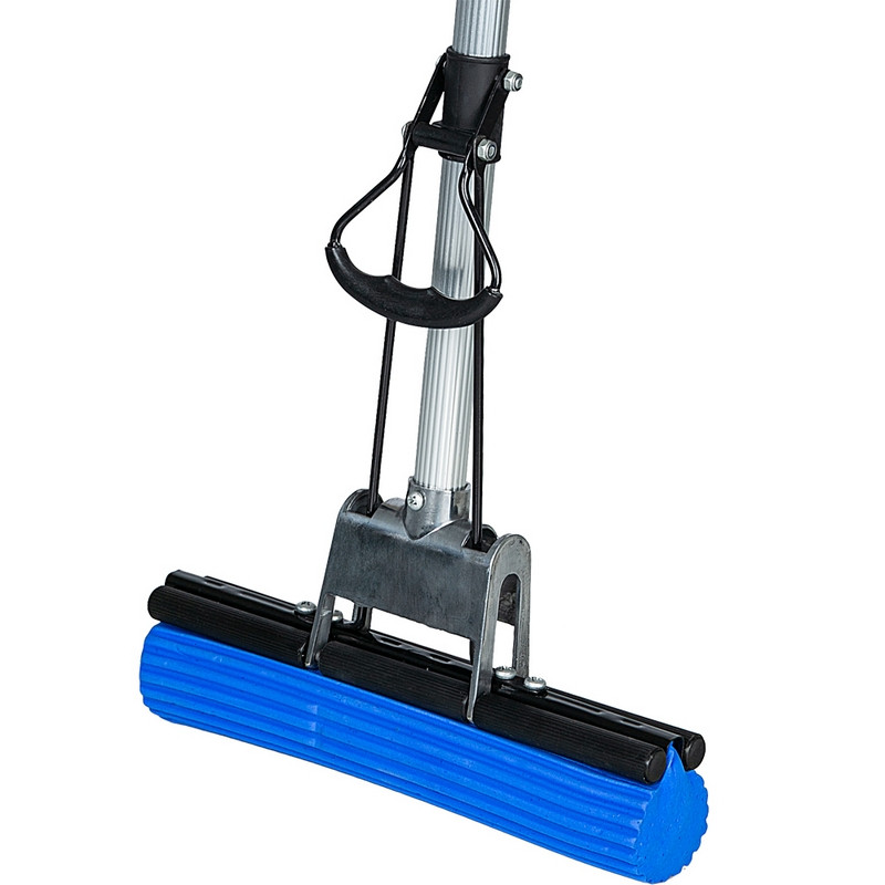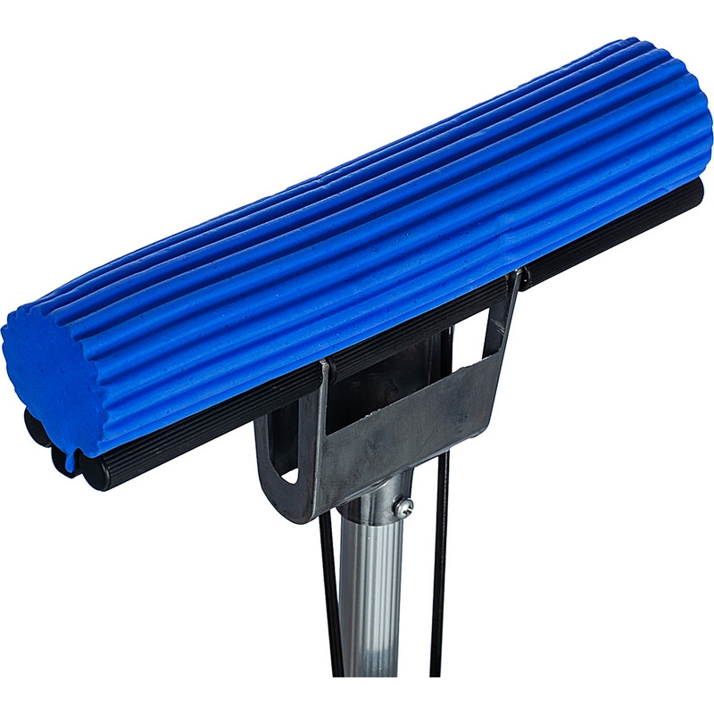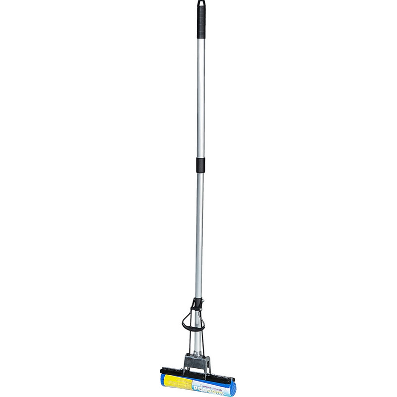 Швабра губчатая отжимная ЭкоКоллекция PVA с МОПом Отжимная швабра позволяет отжимать губчатые насадки для уборки пола с помощью однократного нажатия ролика и педали. Это обеспечивает быстроту и гигиеничность процесса, позволяет удалить всю лишнюю влагу. Телескопическая ручка изготовлена из алюминия, может раздвигаться в диапазоне от 50 до 120 см. Для удобства пользователя на ручке швабры находится пластиковая рукоятка со специальным покрытием против скольжения рук. Механизм отжима сделан из пластика. Комплект поставки: - насадка МОП 27 см; - держатель насадки МОПа; - телескопическая рукоятка 120 см. Внимание! Не поднимать ручку отжима, если губка не размочена! 1. Перед применением положить губку в воду на 10 минут. 2. Для удаления воды и очистки губки поднять-опустить рычаг отжима, держась за кольцо. 3. После использования промыть губку чистой водой без применения химических средств и сохранять во влажном состоянии для продления срока службы.