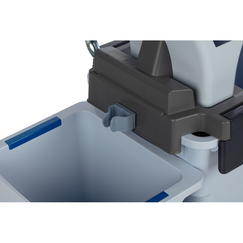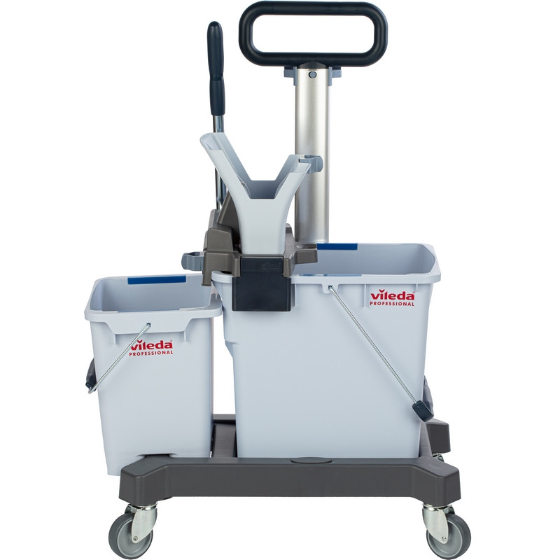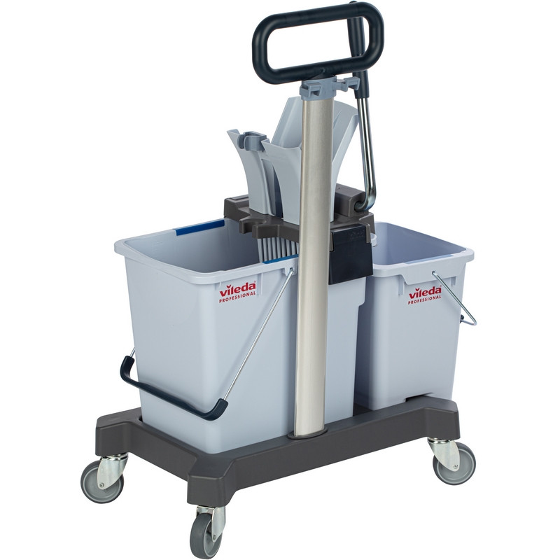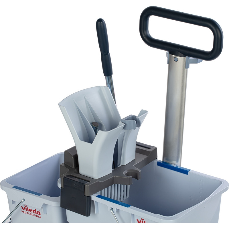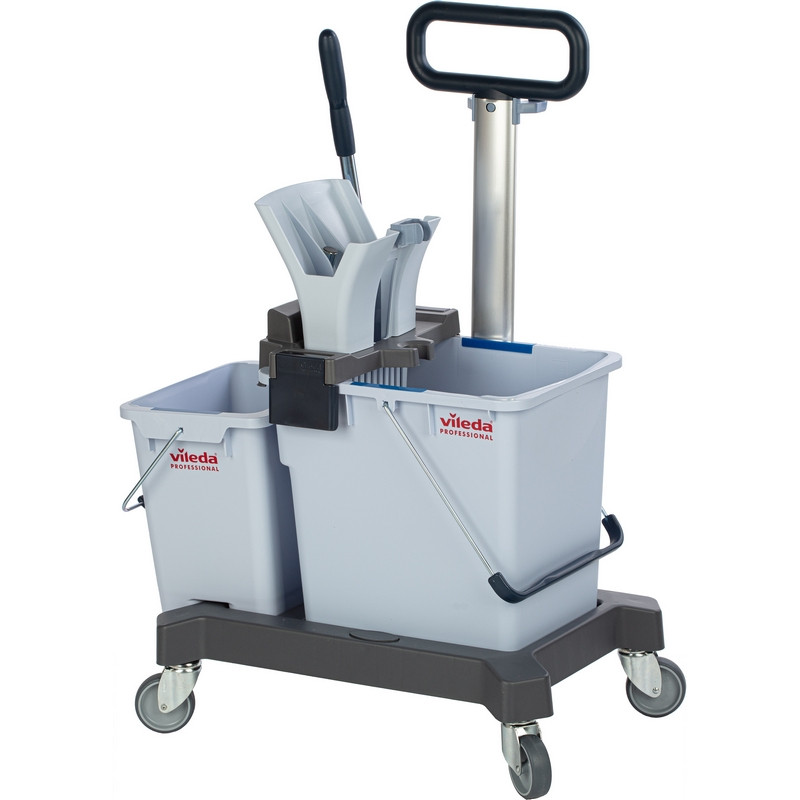 Многофункциональная уборочная тележка Vileda Professional UltraSpeed Pro двухведерная 25+10 л (артикул производителя 147209) в значительной степени превзойдет ваши ожидания по скорости, производительности, универсальности и эргономичности. По сравнению с другими существующими на рынке ведерными системами уборки пола 'ведро-вода' (вертикальный и горизонтальные отжимы) система с плоскими мопами Виледа УльтраСпид Про демонстрирует превосходные показатели эффективности: - При одношаговой уборке убирает 766 м2 в час. - Быстрее отжимает - полный цикл отжима 12,3 сек. - Эффективный отжим - отжимает до 50% больше воды. - Пол высыхает быстрее - уменьшает опасность скольжения. - Просты в использовании - не требуют дополнительного обучения. - Эргономичность - легкая система, удобная транспортировочная ручка. Область применения: уборка полов в офисах, БЦ, магазинах, салонах красоты, кафе, ресторанах, отелях, жилых комплексах, торговых центрах, медицинских центрах, производствах и других объектов с высокой проходимостью и средней площадью до 500 кв.м. В комплект входит туннельный отжим УльтраСпид Про с рычагом; платформа УльтраСпид Про с заглушками и колесами; ведро УльтраСпид Про 25 л; ведро УльтраСпид Про 10 л; транспортировочную ручку УльтраСпид Про в сборе. Устойчивая пластиковая платформа размером 38x56 см. и пластиковыми колесами с заглушками позволяет комфортно перевозить систему по объекту. Компактно упакована в коробку.