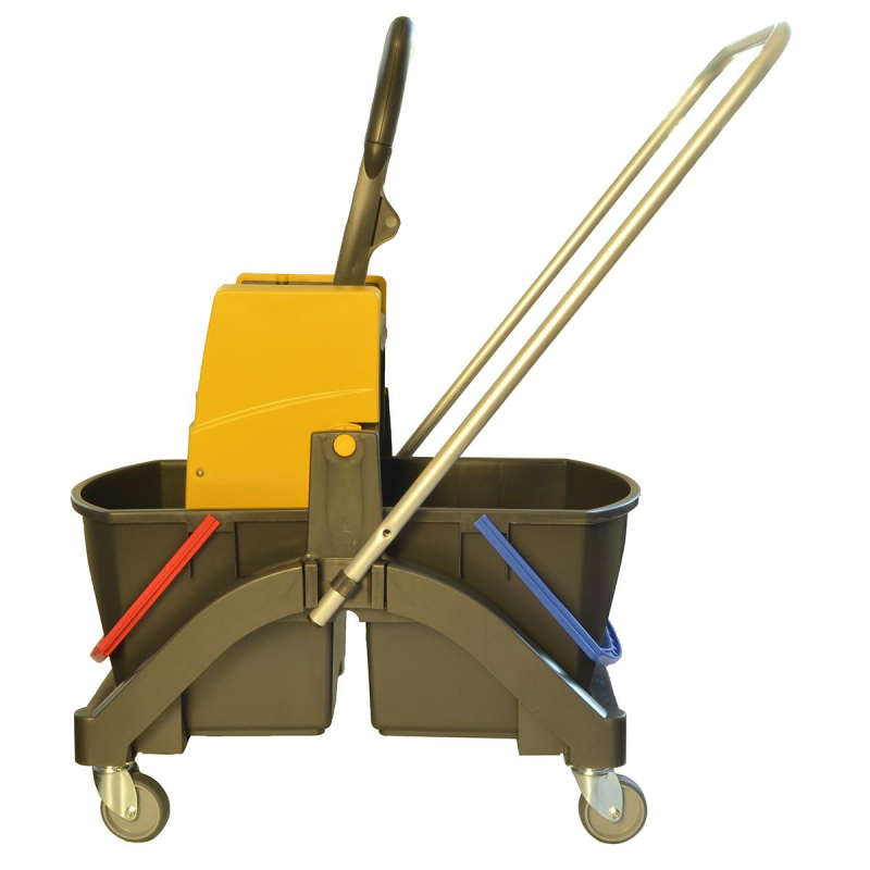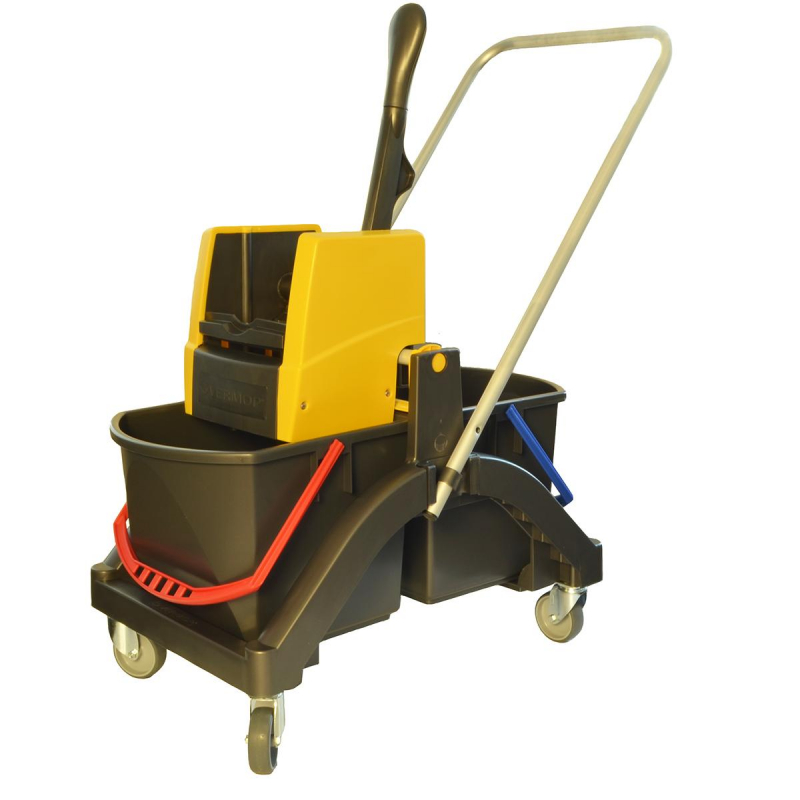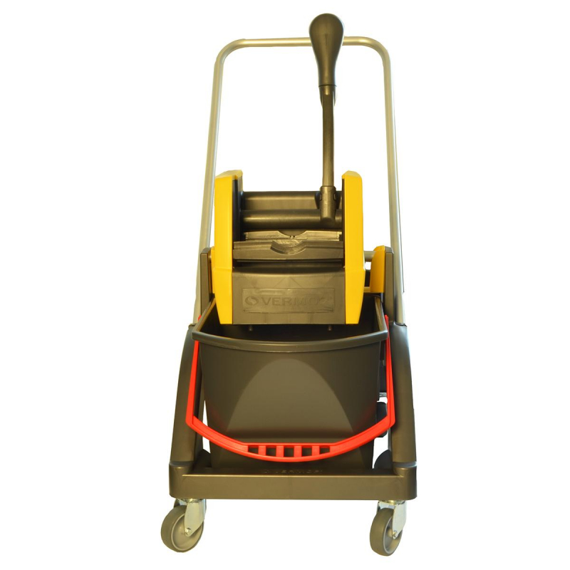 Многофункциональная уборочная тележка Vermop Аква с отжимом 2 ведра по 17 л (артикул производителя 614392) оснащена двумя ведрами емкостью 17 литров. Ее база изготовлена из прочного антивандального пластика, что обеспечивает хорошую устойчивость к механическим повреждениям. Надежный, высококачественный пластик позволяет экономить вес конструкции и в то же время гарантирует длительный срок службы. Тележка отличается компактными размерами и небольшим весом, что облегчает ее транспортировку. Для дополнительного удобства предусмотрена перекидная ручка. По сравнению с тележками других производителей разных ценовых сегментов тележки Vermop выделяются самой низкой стоимостью владения (цена приобретения/срок эксплуатации). В комплект входит пластиковая база, 2 ведра по 17 л (синее и красное или антрацит), отжим VK4 (желтый), с перекидной ручкой. Благодаря большим поворотным роликам, тележкой Vermop Aqua очень легко маневрировать. Габариты базы: 1040х400х450 мм.