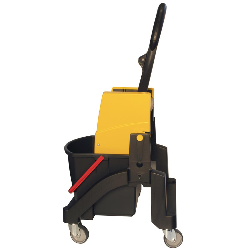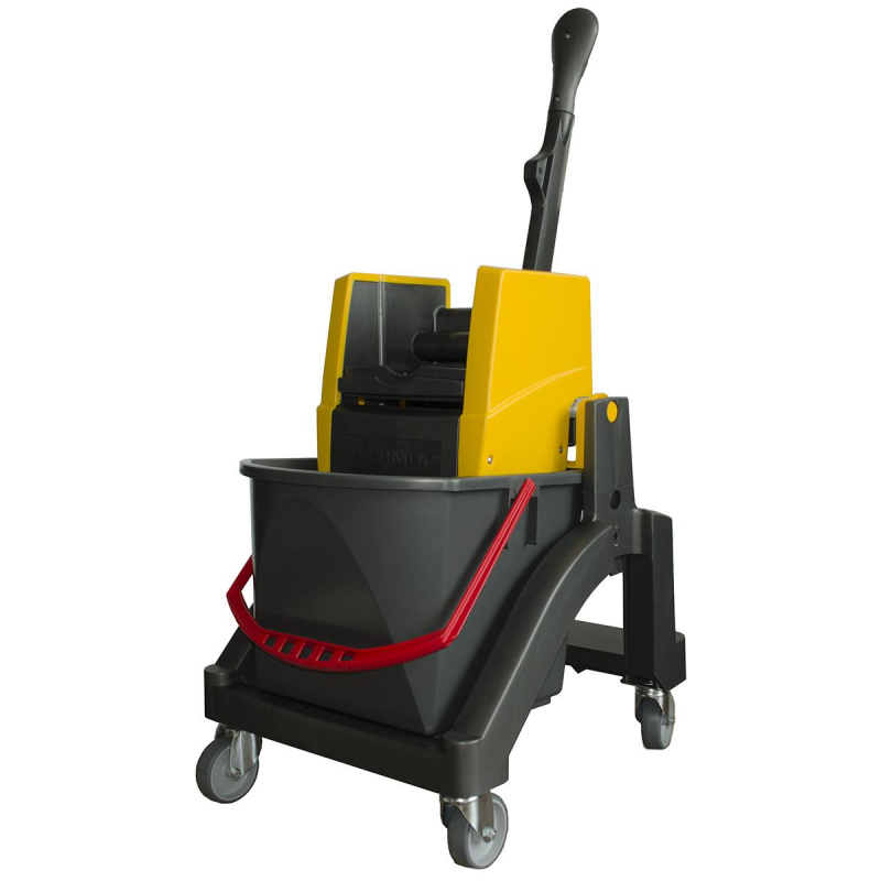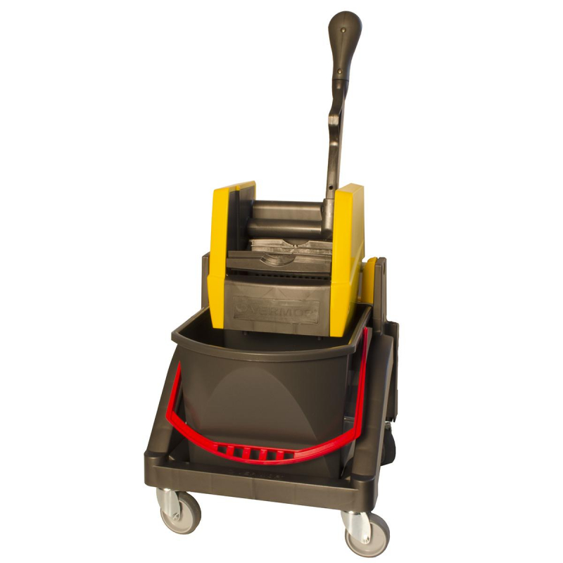 Многофункциональная уборочная тележка Vermop Аква с отжимом 1 ведро 17 л (артикул производителя 0348) оснащена одним ведром емкостью 17 литров. Протестированный ударопрочный пластик позволил создать лёгкую конструкцию и при этом гарантировать долгий срок службы изделия. Одноведерная тележка Aquva с ведром 17 л управляется при помощи ручки отжимного устройства. По сравнению с тележками других производителей разных ценовых сегментов тележки Vermop выделяются самой низкой стоимостью владения (цена приобретения/срок эксплуатации). В комплект входит 1 ведро 17 л, вертикальный отжим VK4 для всех типов мопов. Устойчивые поворотные колёса диаметром 75 мм делают тележку очень манёвренной. Габариты базы: 500х400х450 мм.