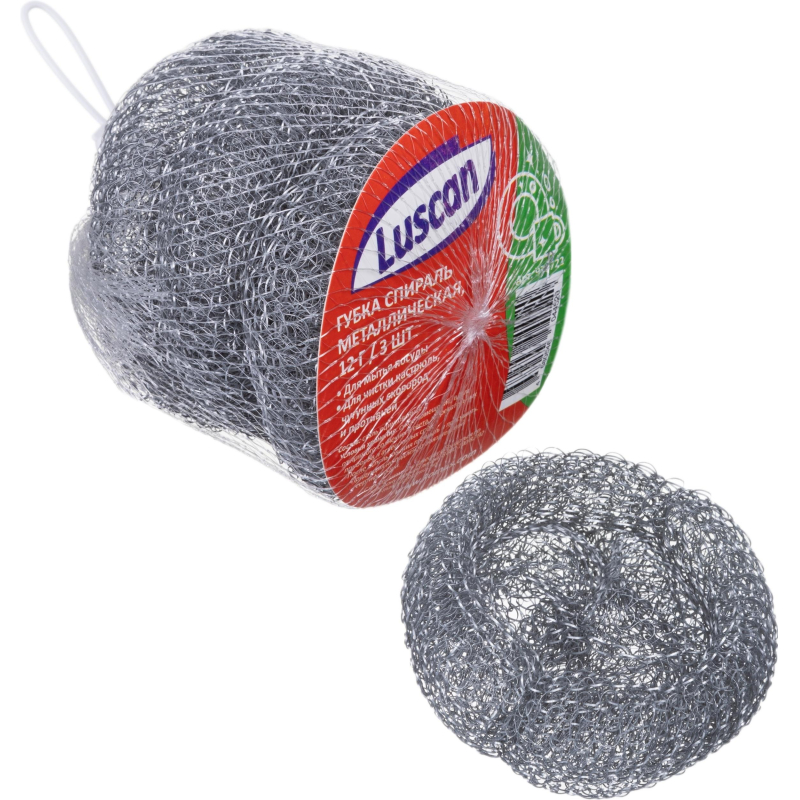 Губки для мытья посуды Luscan металлические 12 г (3 штуки в упаковке).Губка для мытья посуды Luscan металлическая 12 г предназначена для чистки кастрюль, чугунных сковород и противней. После использования тщательно промыть и просушить. Состав: сталь оцинкованная. Условия хранения: сухое помещение, вдали от прямого солнечного света, нагревательных приборов и агрессивных сред.Количество в упаковке: 3 шт.Цвет: металлик.Диаметр губки: 8-8,5 см.