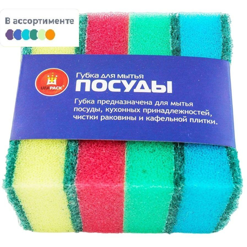 Губка для посуды поролон 9.6x6.4 см с абразивным слоем (4 штуки в упаковке). Губка для мытья посуды изготовлена из гладкого поролона, с одной стороны имеет дополнительный абразивный слой-полосу, прекрасно отчищающую сильные загрязнения, но не повреждающую при этом поверхность. Универсальная губка - подойдет для очистки посуды, бытовых поверхностей и техники, уборки кухонь и ванных комнат. Имеет удобную прямоугольную форму, комфортно ощущается в руке, безопасна и удобна в использовании. Имеет оптимальные габариты. Размер губки: 9.6x6.4x2.7 см. Поставляется упаковками по 4 штуки.