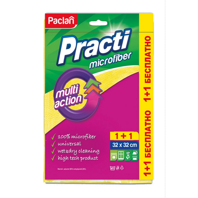 Салфетки хозяйственные Paclan Practi микрофибра 32x32 см 250 г/кв.м бежевые (2 штуки в упаковке). Назначение: сухая и влажная уборка любых поверхностей. Особенности и преимущества: - прекрасно впитывает воду, - не оставляет ворсинок и разводов, - эффективно работает в сочетании с чистящими средствами для устранения пыли, грязи и жира с любых поверхностей, - отлично очищает гладкие поверхности: зеркала, окна, экраны телевизоров, кафельную плитку.Характеристики: - размер: 32х32 сантиметра,- цвет: бежевый, - плотность: 250 грамм на квадратный метр, - состав: микрофибра - 2 штуки в упаковке.Рекомендации по уходу: машинная стирка при рекомендуемой температуре 60°С. Избегать высоких щелочей и сильных отбеливателей, не использовать хлорные отбеливатели.