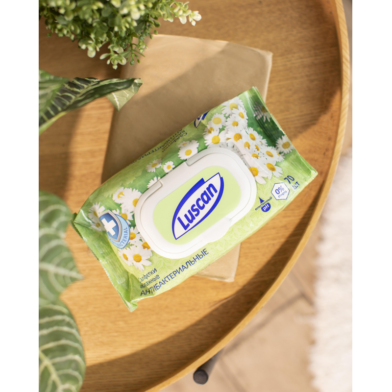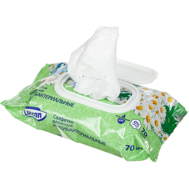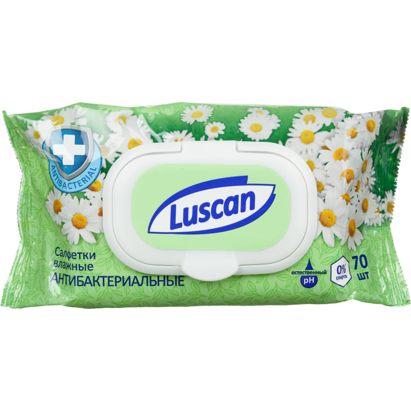 Влажные салфетки Luscan. Предназначены для гигиенической обработки кожи рук. Практичны и универсальны в использовании. Эффективно уничтожают большинство патогенных микроорганизмов, обладают очищающими свойствами. Эффективная защита от микробов в общественных местах, на природе. Не содержат спирта. Меры предосторожности: только для наружного применения. При обнаружении чувствительности к компонентам - прекратить использование. Состав: нетканое полотно, пропитывающий лосьон. Состав пропитывающего лосьона (INCI): Aqua, Glycerin, PEG-7 Glyceryl Cocoate, Chlorhexidine Digluconate, Aloe Barbadensis Leaf Juice, Chamomilla Recutita Flower Extract, Citric Acid, Dipropylene Glycol, Phenoxyethanol, 2-Bromo-2-nitropropan-1,3-diol, Iodopropynyl Butylcarbamate, Trideceth-9, Parfum, Benzyl Salicylate, Coumarin, Hexyl Cinnamal, Linalool, Geraniol. Из-за высокого содержания воды в составе, товар подвержен замерзанию при температуре ниже -5С. При оттаивании, товар не теряет качество и сохраняет все ключевые характеристики. Допускается замораживание салфеток в упаковке производителя, после размораживания салфетки сохраняют свои потребительские свойства.