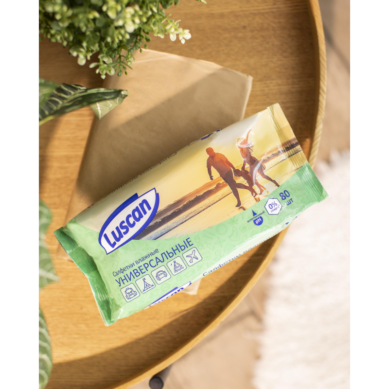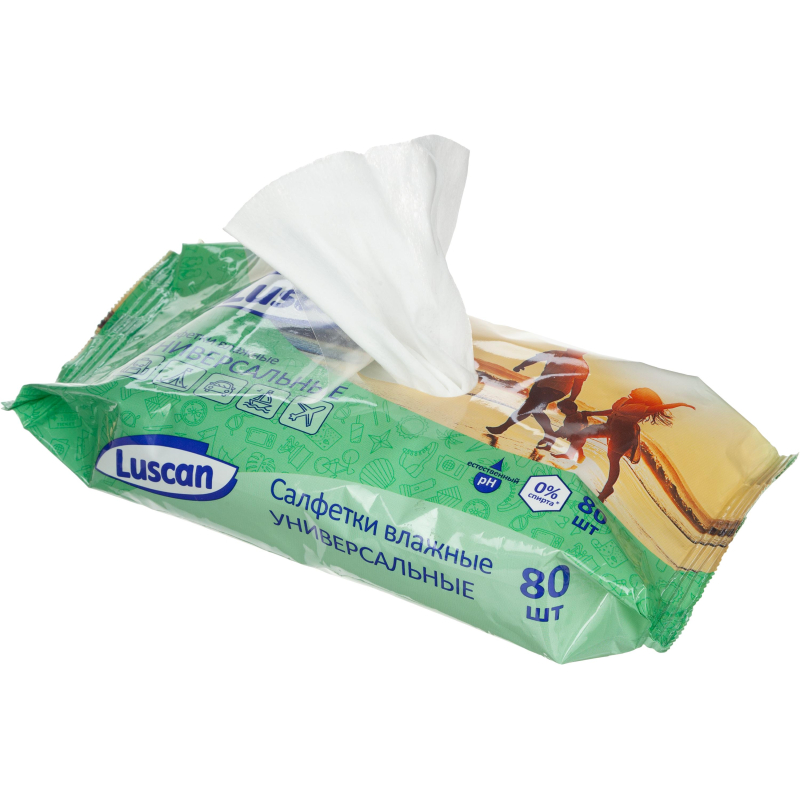 Салфетки влажные очищающие универсальные Luscan. Состав: нетканое полотно, пропитывающий лосьон. Применение: открыть защитный клапан, извлечь салфетку, плотно закрыть защитный клапан. Предупреждение: только для наружного применения. При обнаружении чувствительности к компонентам - прекратить использование. Условия хранения: хранить вдали от прямых солнечных лучей и отопительных приборов при температуре от 5 до 25°С градусов, в местах не доступных детям. Влажные салфетки замерзают при температуре ниже 0°С, после размораживания сохраняют свои потребительские свойства. Номер партии: ТУ 9158-010-54804491-2001. Из-за высокого содержания воды в составе, товар подвержен замерзанию при температуре ниже -5С. При оттаивании, товар не теряет качество и сохраняет все ключевые характеристики. Допускается замораживание салфеток в упаковке производителя, после размораживания салфетки сохраняют свои потребительские свойства.