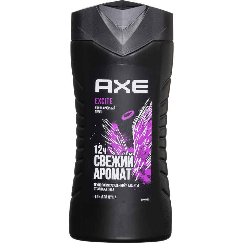 Гель для душа Axe Эксайт 250 мл Даже ангелы не устоят перед Axe Excite. Карамельные ноты взбудоражат любую особу, а сладкий оттенок лесного ореха и кокоса сделает тебя настоящим предметом вожделения. Axe Excite действительно сводит с ума, притягивает и пробуждает самые яркие чувства. Состав: вода, лимонная кислота, линалоол, натрия хлорид, кумарин, натрия бензоат, парфюм, натрия лауретсульфат, альфа-изометил ионон