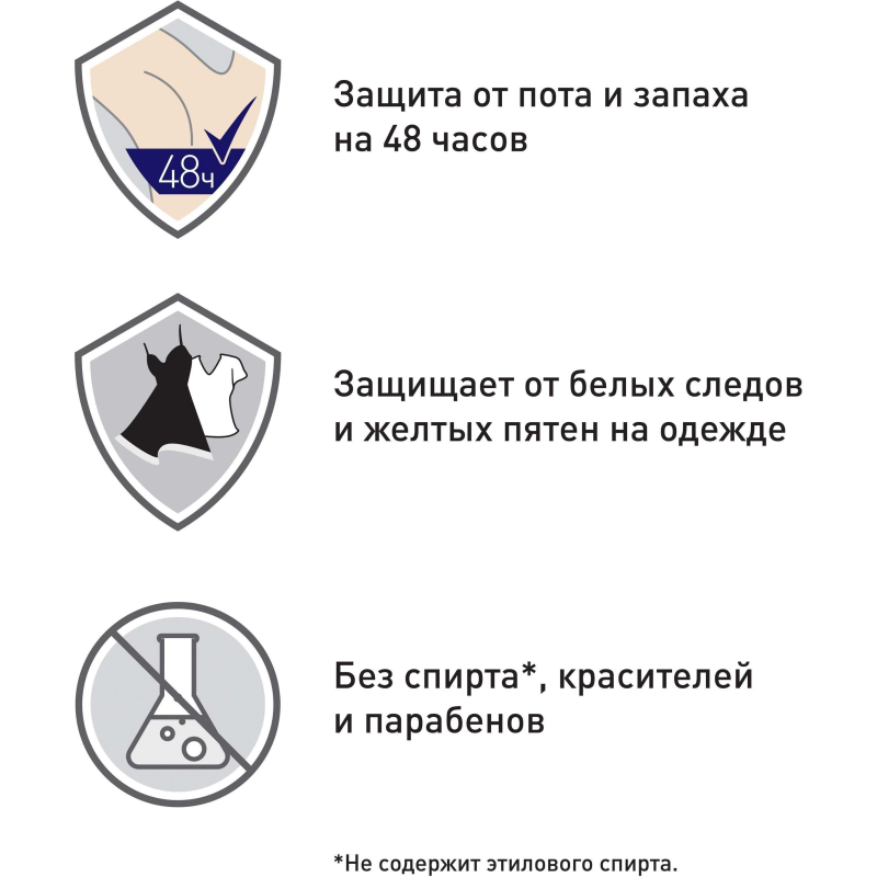 Дезодорант-антиперспирант Rexona Прозрачный кристалл позволит вам насладится чистым и прозрачным ароматом сочного грейпфрута со свежими нотками ландыша и фрезии с мускусно-амбровым аккордом. Формула антиперспиранта бескомпромиссно обеспечивает надежную защиту от пота и запаха, а также эффективно предотвращает появление белых следов и желтых пятен на одежде. Состав: Isobutane, Cyclopentasiloxane, Propane, Aluminum Chlorohydrate, PPG-14 Butyl Ether, Butane, Parfum, Disteardimonium Hectorite, Propylene Carbonate, Caprylic/Capric Triglyceride, Gelatin Crosspolymer, Cellulose Gum, Sodium Benzoate, Aqua, Hydrated Silica, Sodium Starch Octenylsuccinate, Maltodextrin, Hydrolysed Corn Starch, Silica, BHT, Benzyl Alcohol, Benzyl Benzoate, Benzyl Cinnamate, Benzyl Salicylate, Butylphenyl Methylpropional, Citronellol, Geraniol, Hexyl Cinnamal, Hydroxycitronellal, Limonene, Linalool. Применение: встряхните баллон, распыляйте 2-3 секунды на сухую и чистую кожу подмышек с расстояние 15 см от тела. Прекратите использование при появлении сыпи или раздражения на коже. Объем: 150 мл.