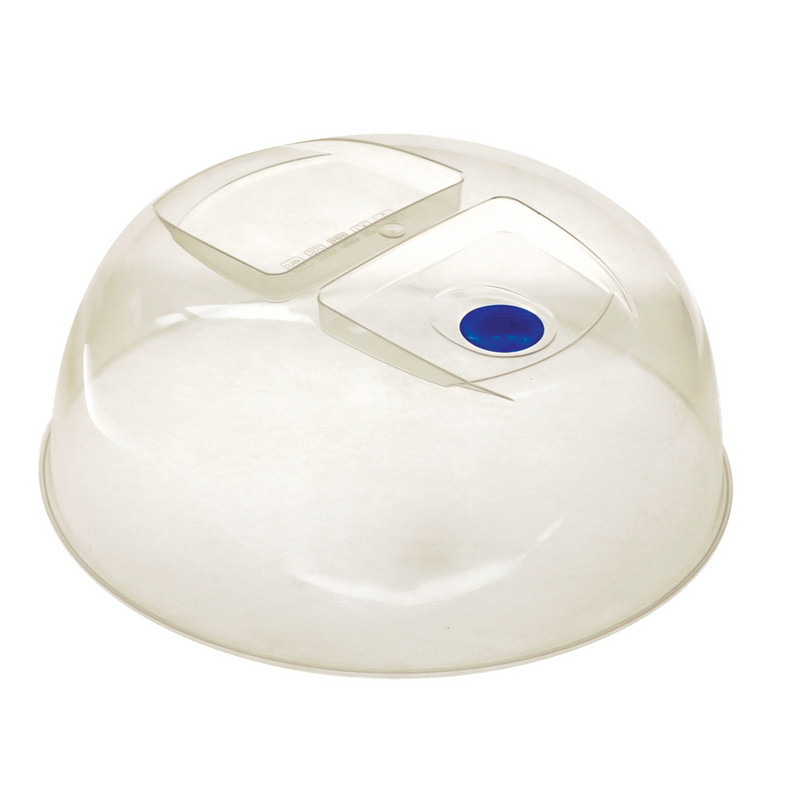 Крышка для СВЧ Polar диаметр 258 мм с клапаном. Крышка для микроволновых печей выполнена из термоустойчивого и безопасного пластика, предназначена для защиты внутреннего пространства от загрязнений и брызг. Изделие оборудовано специальным клапаном, закрывающим отверстие. При избыточном давлении под крышкой клапан автоматически открывается для отвода пара наружу. Диаметр крышки 258 мм.